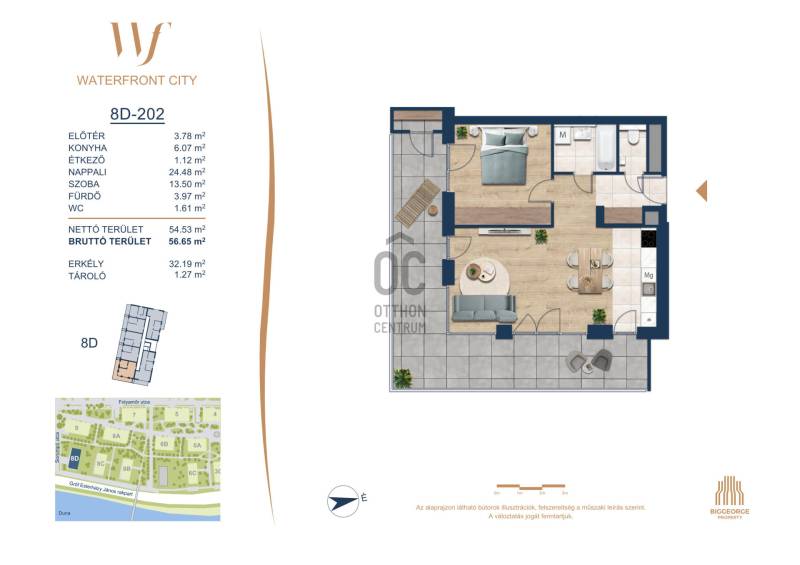 Projekt bemutatásaA projektrőlA Waterfront City egy új, modern városnegyed a 3. kerületben, ahol a természet közelsége és a városi kényelem tökéletes egyensúlyban van. A Duna-part közvetlen szomszédságában elhelyezkedő fejlesztés különleges atmoszférát kínál: a sétányt új épületek határolják, üzletekkel, kávézókkal és szolgáltatásokkal, amelyek élhető közösségi teret teremtenek.A 13 emeletes lakóépületből lenyűgöző örökpanoráma nyílik a budai hegyekre és a folyóra, a tágas teraszok pedig ideálisak a pihenéshez vagy a baráti összejövetelekhez. A zöldtetők, parkosított terek és fenntartható megoldások – mint az energiatakarékos rendszerek és okos otthon funkciók – mind hozzájárulnak a modern, környezettudatos életstílushoz.Látogass el értékesítési irodánkba, és tekintsd meg a városnegyed makettjét személyesen! Ismerd meg, milyen lesz az élet Budapest egyik legizgalmasabb új fejlesztésében!Óbuda szívébenKépzeld el, ahogy egy napsütéses délelőttön Óbuda szívében sétálsz, a Duna közelsége frissítően hat rád, miközben a Folyamőr utca, a Miklós tér és a Bogdáni út által határolt, öt hektáros területre érsz. A levegőben ott van a város történelme, mégis minden részletében a jövő hívogat.A 50 000 négyzetméteres területen egy hangulatos sétány vezet végig, amely egyenesen az óbudai Fő térre visz – mindössze 600 méterre. Ez a sétány nem csupán összeköt, hanem élményt nyújt: a Kolosy térről induló Óbudai Promenád részeként a város egyik legélhetőbb, legpezsgőbb szakaszán haladsz végig. És ha biciklivel érkeznél? A nemzetközi kerékpárút is itt halad el, Szentendre felé vezetve.Az 5. ütemben épülő 149 lakás mindegyike egyedi hangulatot kínál. Ahogy belépsz egy-egy otthonba, a hatalmas üvegfelületeken át beáradó fény és a tágas, szellős terek azonnal magukkal ragadnak. A kilátás? A Kaszap István park zöldje nyújt békét, míg a felsőbb emeletekről a Budai-hegység örökpanorámája tárul eléd – minden nap egy új festmény az ablakodban.A 6. ütemben 316 modern lakás épül, tágas teraszokkal és lenyűgöző kilátással a Dunára és a budai hegyekre. A lakók kényelmét őrszolgálat, kamerarendszer, mélygarázs, vendéglátóhelyek, belső park, játszótér és E-autó töltők szolgálják. Ez a projekt utolsó üteme, amely még közvetlen Duna-parti kapcsolattal rendelkezik. |