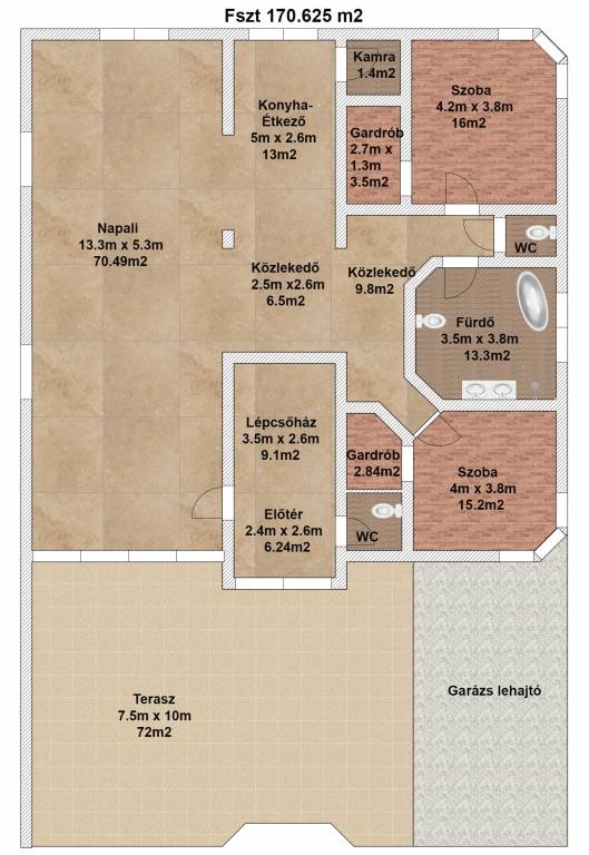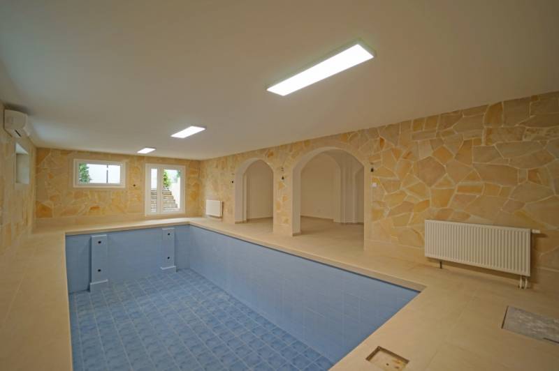 Budapesten a XVII. Kerületben a Pesti útról nyíló 848m2-es telken, eladó egy nettó 523m2-es 7 szoba + 2 nappalis, fűthető belső medencés, háromszintes luxus családi ház.Nyeles telek révén a Pesti úttól az ingatlan 60 méterre helyezkedik el, így a zajterheléstől és a kíváncsi tekintetektől is távol van az élettér.A minőség fontos szempont volt a kilakításnál, a földszinten a padlót 60x120-as márvány lapokkal burkolták, a lépcsőház korlátai rozsdamentes acél és üveg kombóval készültek, a három fürdőszoba szaniterei, bútorai és csaptelepei az Arezzo Design termékeiből lettek ízlésen kiválasztva.A nappaliban a mennyezetbe épített led csíkok modern stílust és világos teret külcsönöznek.A homlokzatok dryvit szigeteléssel lettek ellátva, a thermo nyílászásók három rétegű üveggel szereltek.A hűtésről 10db daikin inverteres klíma, a fűtésről kondenzációs gázkazán gondoskodik, a földszinten, padló fűtéssel, a szuterén szinten és az emeleten radiátoros hőleadással.A melegvíz ellátását is a kondenzációs gázkazán látja el indikrekt tároló segítségével.Külön kazán biztosítja a szuterén szinten elhelyezkedő 8x3,6 méteres 185 cm mély medence fűtését.A riasztórendszer minden nyílászárónál nyításérzékelővel szerelve előre lett vezetékelve, továbbá a kamera rendszernek is ki lettek alakítva a vezetékei.Parkolás az elektromos garázsajtóval szerelt, 13.3 méter hosszú és 5.2 méter széles, 67.66m2-es garázsban lehetséges.A tehermentes ingatlan rugalmasan megtekinthető!Amennyiben hirdetésem felkeltette az érdeklődését vagy egyéb információra van szüksége hívjon bizalommal! hp |