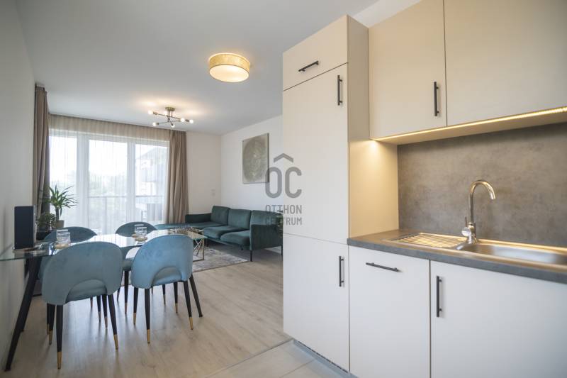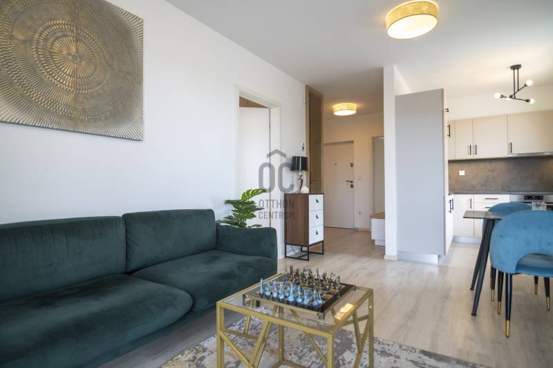 Azonnal költözhető bútorozott ingatlan a WATERFRONT CITYBEN, ahol a város és a víz találkozik.Kiadásra kínálunk egy nappali + 2 szobás, nettó 60,15 m² alapterületű ingatlan, amihez tartozik egy 3,98 m²-es erkély, illetve egy 15,52 m²-es terasz is.A teraszon egy beépített, 1,4 m²-es tároló is helyet kapott.A lakás AZONNAL KÖLTÖZHETŐ!Az alaprajzi kialakítás kiemelkedően praktikus! A lakást tágas és világos terek jellemzik, a nappali konyharész kellően elszeparált és a 2 hálóteret tökéletesen elválasztja egymástól, megmarad az intimitás!Mindkét hálószoba rendelkezik külön erkéllyel, de a nagyobb méretű terasz a nappaliból is megközelíthető.MŰSZAKI TARTALOM- Új építésű, AA++ energetikai besorolású lakás- Hőszivattyús mennyezeti hűtés-fűtés- 3 rétegű nyílászárók verhetetlen hangszigeteléssel- Biztonsági ajtó, riasztó előkészítéssel- Modern, egyedi konyhabútor beépített gépekkel- Erkély dunai kilátással + beépített tárolóval- Teljes értékű hálószobák franciaággyal, beépített gardróbokkal- Teljesen felszerelt fürdőszoba- Előtér tágas gardróbszekrénnyel- Dupla lift, teremgarázs lifttel elérhetőA LAKÓPARK számos szolgáltatással rendelkezik:-rövidesen kivitelezésre kerül egy híd, amelyen keresztül a lakóparkból KÖZVETLENÜL átsétálhatunk a Hajógyári-szigetre!-ingyenes Wi-Fi a közösségi terekben-mozgásérzékelős világítás, napelemes padok- telefontöltési lehetőséggel-Gyalogosan elérhető a Hajógyári-sziget-Kávézók, pékségek, Pilates stúdió a lakóparkon belülKözkedvelt lokáció:A Waterfront City új, dinamikusan fejlődő városrésze kiváló közlekedéssel és nyugodt környezettel ötvözi a belváros közelségét.A tömegközlekedés szempontjából5 perc séta a Filatorigáti HÉV-megállóhoz (H5), amely közvetlen kapcsolatot biztosít a Batthyány téri M2-es metróval és a belvárossalÓbudai Rendelőintézet a közelben: Az 1-es villamos áll meg itt, amely a belváros északnyugati irányába közlekedik. A közelben továbbá számos buszjárat is elérhető, amelyekkel könnyen megközelíthető a belváros.AZ ÁR TARTALMAZ 1 DB GARÁZS ÉS TÁROLÓ BÉRLÉSÉTIrodánk a lakóparkban található, így szívesen segítünk a bérbeadásban is, a lakás rugalmasan megtekinthető! |