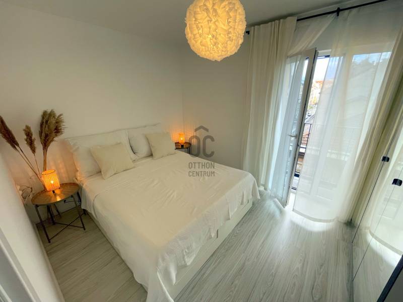 Minimum egy évre kiadó Budapest VI. kerület nagyvárosias részén található Szondi utca - Székely Bertalan utca sarkán 2022-ben átadott újépítésű társasházban egy egyedi fekvésű, kifinomult ízléssel kialakított 41 nm alapterületű lakás!A lakás 4. emeleti, két utcafronttal rendelkezik, közvetlen szomszédja nincs, az amerikai konyhás nappalin kívül egy hálószobából, fürdőszobából, előszobából és két francia erkélyből áll, északkelet-északnyugati fekvésű.