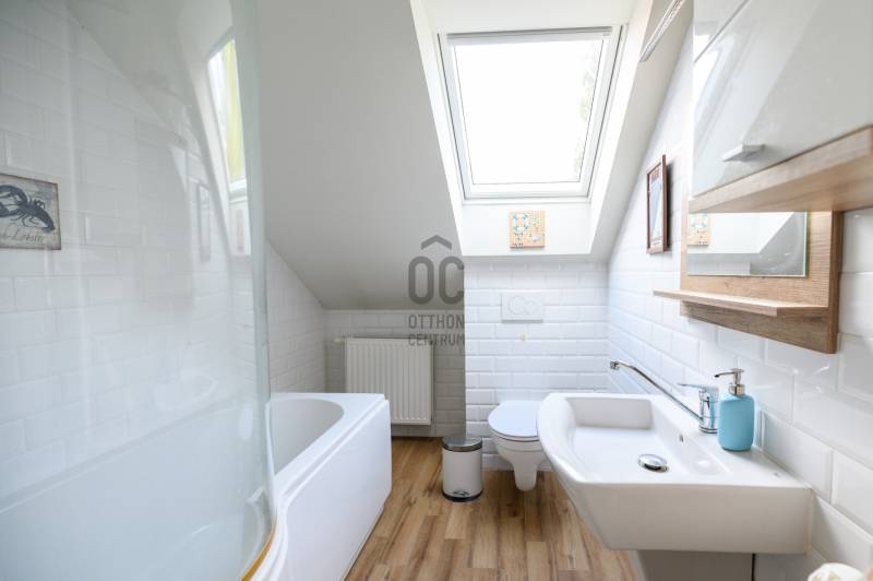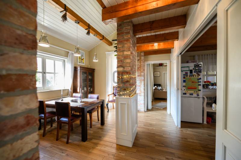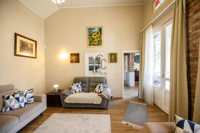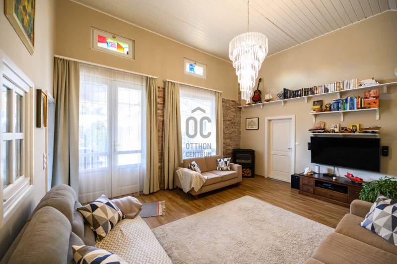Szentendre egyik legfelkapottabb és legkeresettebb környékén, a csendes Bükkös-patak szomszédságában kínálunk eladásra egy igazán különleges, használt családi házat, illetve egy kisebb házat, amely tökéletes választás lehet családosok számára. A két ingatlan összesen 205 négyzetméteren helyezkedik el, amelyhez egy 563 négyzetméteres rendezett kert tartozik, így bőséges teret biztosít a szabadidős tevékenységekhez és a családi együttlétekhez. Csendes, forgalomtól mentes utcában egy osztatlan közös telken található, amely ügyvédi használati megosztással rendelkezik.A főépületet Turi Attila építész tervezte, aki Makovecz Imre tanítványa volt. Tágas, magas belmagasságú nappalija világos és barátságos légkört teremt, amely ideális helyszín a közös programokhoz. A nappaliba, valamint az emeleti szobákban Aknay János neves festőművész színes ablakai adnak egyedi fényeket. Az épületben központi porszívó rendszer, riasztó és kamerarendszer üzemel.A két házban összesen 7 szoba található, melyek között három fürdőszoba is helyet kapott, így a család minden tagja számára elegendő hely és kényelem biztosított. A modern beépített bútorok és szekrények praktikus megoldásokat kínálnak, míg a 16 négyzetméteres terasz tökéletes helyszín a reggeli kávézáshoz vagy a baráti összejövetelekhez. A kandalló és a gázfűtés, valamint a klíma garantálja az ingatlan kellemes hőmérsékletét télen és nyáron egyaránt. Az épületben központi porszívó rendszer, riasztó és kamerarendszer üzemel. A kisház 120 éves múltra tekint vissza, melyben 1 szoba, gardrób szoba, konyha, fürdőszoba és egy kisebb tetőtéri szoba található. A kellemes hangulatot fokozza a hozzá tartozó régi borospince. A főépület hangulatos terasza, a kerti tároló és a kézműves barkácsműhely, valamint a fedett garázs és a három autó számára beállási lehetőség biztosított, melyet kényelmesen automata garázskapuval érhetünk el.A környék ellátottsága kiváló, így a mindennapi szükségletek könnyedén kielégíthetők. A közeli üzletek, iskolák és óvodák mindössze néhány percnyi távolságra találhatók, ami különösen fontos lehet a családok számára. A csendes utcák és a barátságos szomszédság garantálják a biztonságos és nyugodt életkörülményeket. A közlekedés is kedvező, hiszen a helyi buszjáratok gyorsan elérhetők, így Szentendre belvárosa és a főváros is könnyen megközelíthető. A kertben található jakuzzi és a kerti tároló további lehetőségeket kínál a szabadidő eltöltésére, míg a nagy belmagasságú helyiségek légies érzést kölcsönöznek az otthonának. Ez az ingatlan nem csupán egy ház, hanem egy otthon, ahol a család minden tagja megtalálhatja a maga helyét és kényelmét. Ha Ön is szeretne egy exkluzív, világos és tágas otthont, ahol a családja biztonságban és boldogan élhet, ne habozzon kapcsolatba lépni velünk. Kérdéseivel és érdeklődésével bizalommal fordulhat hozzánk, hiszen célunk, hogy segítsünk Önnek megtalálni álmai otthonát. |