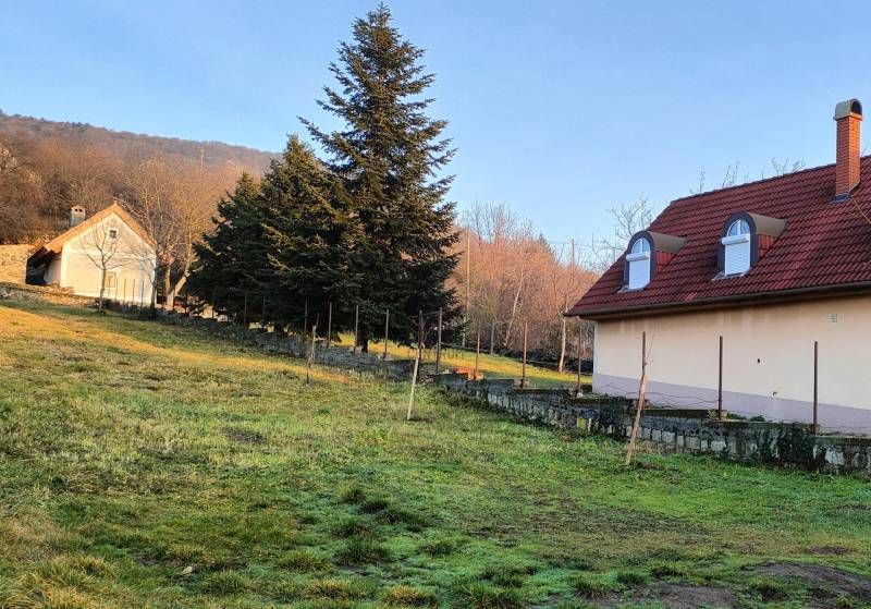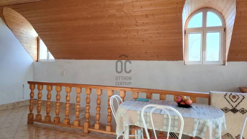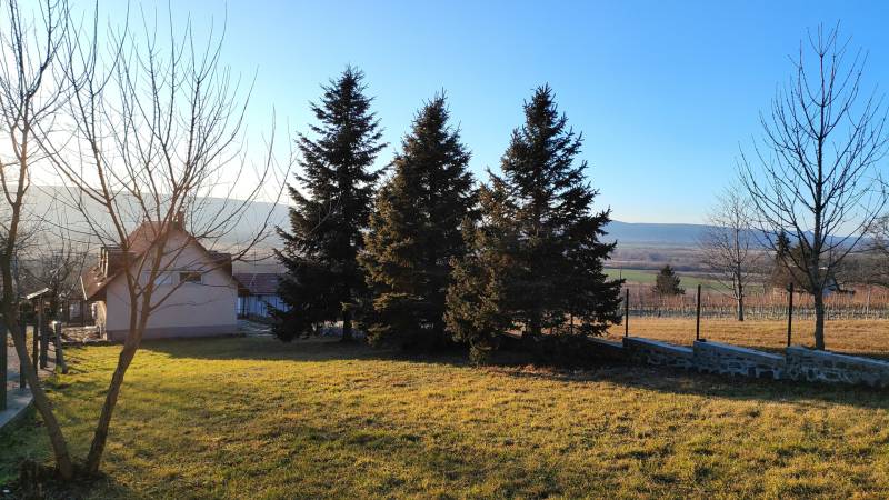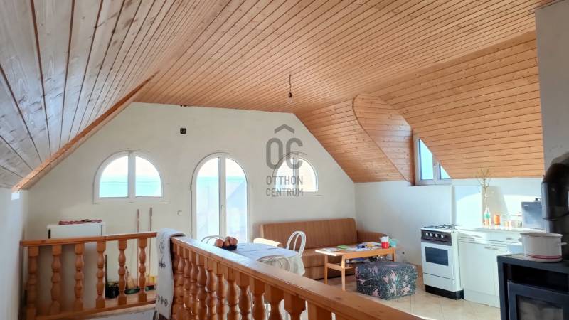 A Szent György-hegy az elmúlt években a Balaton-felvidék egyik legkeresettebb pontjává vált. Hegymagas kedvező fekvésének köszönhetően a környék csendje, a rendezett szőlősorok és a túraútvonalak közelsége egyszerre kínál nyugodt és aktív életmódot. A dűlőút végén fekvő telek már az érkezéskor is egyértelművé teszi, hogy itt a hegy természetes nyugalma a mindennapok része.Ezen a 2383 nm-es, gondozott, enyhén lejtős, szabályos négyszögalakú saroktelek alsó sarkán áll az 1998-ban a meglévő kőpincére téglából felépült ház. A napsugaras motívumú fa bejárati ajtók és a műanyag redőnyös ablakok egyszerre adnak karaktert és praktikumot az épületnek.Az egyik ajtó mögött a FÖLDSZINTI TÁROLÓHELYISÉG (12 m2) található, amelyből járólappal burkolt, részben csempézett 30 m2 nagyságú PINCE nyílik. A másik bejárati ajtón belépve márványlépcsősor vezet fel az EMELETre, ahol az AMERIKAI KONYHÁS NAPPALIba érkezünk. A tér megnyitása és a fény játéka miatt a 22 m2 nagyságú helyiség élénk és tágas, az ERKÉLYre (11m2) kilépve pedig kibontakozik az a részpanoráma, amely egyaránt mutatja a BALATON tükrét és a Keszthelyi-hegység vonulatait.KÉT HÁLÓSZOBA (10 m2, 11,5 m2) is helyet kapott ezen a szinten, mindkettő csendes, a hegy felé forduló hangulatú, valamint itt található a zuhanyzós FÜRDŐSZOBA is. A lépcsőház alatti térben további 2 kintről megközelíthető tárolóhelyiség kialakítására került sor.A ház műszaki adottságai rendezettek és praktikusak: vezetékes VÍZ és VILLANY áll rendelkezésre, a szennyvíz egy 7 m³-es, két tisztítónyílással ellátott DERÍTŐbe távozik. Az emeleti élettér fűtése jelenleg a nappaliban található KANDALLÓ segítségével megoldott, de a központi fűtés rendszere is kiépítésre került, így a későbbi korszerűsítés lehetősége adott.Az épület cseréphéjazata megbízható és időtálló látványt ad.A házban található belső ajtók cserére, a falak kifestésre várnak.Az ingatlan Hegymagas zártkerti részén fekszik, művelési ága: szőlő és gazdasági épület, út, így az adásvételi szerződést közzé kell tenni.Lokációja kiváló, autóval is minden évszakban könnyen megközelíthető.Ezt az ingatlant azok fogják igazán a magukénak érezni, akik keresik a természet közelségét, szeretik, ha otthonukból elindulva egy hosszabb túraösvény vagy egy csendes erdei út néhány perc alatt elérhetővé válik csakúgy, mint a település központja, boltja és a buszmegálló.Ideális választás lehet családoknak, akik nyaralót vagy hétvégi menedéket álmodnak a Balaton-felvidéken; természetkedvelőknek, akik értékelik a hegy csöndjét; vagy akár szálláshelyet kialakítani vágyóknak, akik a Szent György-hegyre érkező vendégeknek szeretnének egy különleges élményt nyújtani.Ha szeretné megtapasztalni a hegyoldal atmoszféráját, kérem, hívjon bizalommal, vagy jöjjön el és nézze meg személyesen a kedvező fekvésű ingatlant. |
