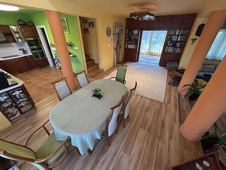 XVII. KERÜLETBEN: RÁKOSKERTEN, ELADÓ EGY 153 M2-ES, JÓ ÁLLAPOTÚ SORHÁZ, SAJÁT, GYÖNYÖRŰEN GONDOZOTT 456 M2-ES TELEKKEL, EGY 32 M2-ES HÁZ ALATTI GÉPKOCSIBEÁLLÓVAL ÉS ELEKTROMOS GARÁZSKAPUVAL. A BEÉPÍTETT, VALAMINT A TOVÁBBI BÚTORZATI DARABOK MEGBESZÉLÉS ALAPJÁN A VÉTELÁR RÉSZÉT KÉPZIK.AZ ÉPÜLET JELLEMZŐI:A ház 1999-ben épült, B38-as porotherm téglából, beton alappal és födémmel rendelkezik, a tető pedig 2014-ben került felújításra.Mindenhol fa és dupla üveges-gázos nyílászárók találhatók.A vezetékek rézből vannak.A ház melegét BOSCH gázkazán biztosítja, valamint a földszinten padlófűtés is be van vezetve. A meleg vízről pedig egy CONCEPT villanybojler gondoskodik. A fenti közlekedőben egy 5 Kw-os hűtő klíma gondoskodik a ház hűvösen tartásáról.Burkolatok a földszinten: konyhában kő, a fürdőszobában és a mosdóban csempe, míg a többi helyiségben vinyl található. Az emeleten a fürdő csempével, a többi helyiség parkettával burkolt.A telken be lett szerelve egy automatizált öntözőrendszer, valamint a telek végében egy 5 m2-es műanyag tároló is található.ELRENDEZÉS:Földszint: amerikai konyhás nappali + étkező, zuhanyzós fürdőszoba, WC + mosdó, előszoba, kazánház, tároló, 16 m2-es teraszEmelet: 3 szoba, közösségi tér, zuhanyzós fürdőszoba + WC + infra szauna.KÖRNYÉK:Rákoskert forgalomtól mentes, csendes mellékutcájában, nagyon jó közlekedésnél. A közelben, iskola, óvoda, játszótér, orvosi rendelő, gyógyszertár, számos bevásárlási lehetőség.2 perc sétára a Kucorgó tér található, ahonnan a 97E, 202E, valamint a 956-os éjszakai buszjárat érhető el.3 perc sétára találhatók a 161, 162, 201 E, 262 buszjáratok, valamint a 990-es éjszakai járat.IRÁNYÁR: 134,5 M Ft.Az ingatlan tehermentes.Hitelre is megvásárolható, melyben irodánk ingyenes tanácsadással áll rendelkezésükre!VEVŐINK RÉSZÉRE A KÖZVETÍTÉS DÍJTALAN!A hirdetésben szereplő adatok tájékoztató jellegűek. |