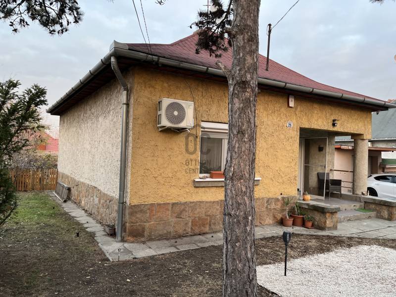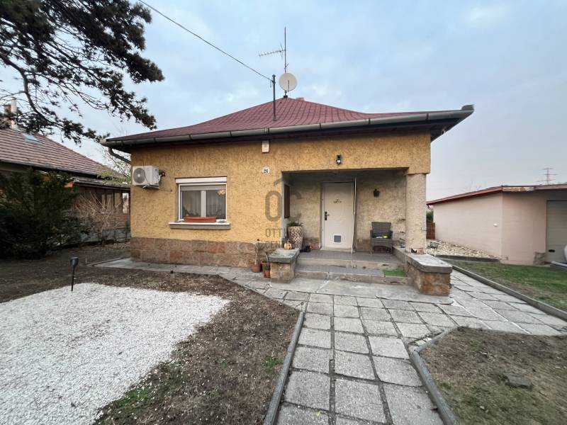 Budapest XXI. kerületének egyik legkeresettebb, kervárosi részén, Királyerdőn kínáljuk megvételre ezt a 74 m²-es, két szobás, otthonos, kiváló elosztású családi házat.A Duna-part csupán néhány perc könnyed sétával elérhető.Az ingatlan jellemzői:Karbantartott, jó állapotú ház, és kert.Jó állapotban lévő tető.Műanyag nyílászárok.Praktikus elrendezés Tágas nappali kertre néző ablakkal, hálószoba, ahonnan a fürdőszoba is megközelíthető. Konyha étkezővel és kamrával.Az otthon melegéről gázcirkó gondoskodik.Tetőtér-bővítési lehetőség, amely tovább növeli az ingatlan értékét és jövőbeni potenciálját.Kiváló lokáció, csendes barátságos kervárosi életérzés!A telek és külső terek előnyei:- 668 m²-es méretű telek, gondozott kerttel.- Hangulatos tűzrakó hely, kerti sütögetéshez, főzéshez.- Kerti medence felállításához kialakított kertrész.- Különálló 20 m²-es garázs, előtte fedett autóbeállási lehetőség- Az utcán a parkolás ingyenes Tömegközlekedési lehetőségek:71-es busz Csepel központja felé148-as busz a Kőbánya-Kispest metróvonalhoz948-as éjszakai járatD14-es rév Soroksár feléKinek ajánljuk?Az ingatlan tökéletes választás azok számára, akik egy nyugodt, természetközeli környéken keresnek értékálló és bővíthető otthont. Ideális választás első ingatlannak, idősebb, vagy fiatalabb párok részére, de kis családok számára is kiváló választás! |