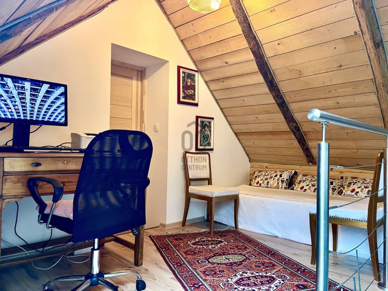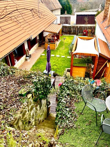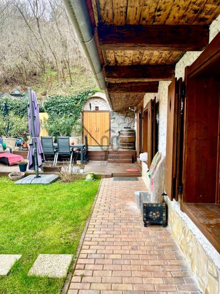 Fedezze fel ezt a kivételes lehetőséget Pest megye szívében, a festői Visegrádon, ahol a történelmi örökség találkozik a természettel és a modern életstílussal. Ez az igényes, néhol eklektikus stílusban felújított ház ideális választás lehet mindazok számára, akik egy csendes és biztonságos környezetben keresnek otthont vagy befektetési lehetőséget.A 110 nm-es ház egy 772 nm-es telken fekszik, melynek a felső részén kialakított pihenőteraszáról csodás panoráma nyílik a Dunára.A rendezett kert szépen füvesített és automata, föld alatt futó öntözőrendszerrel rendelkezik, szemet gyönyörködtető rózsákkal, hortenziákkal büszkélkedhet.A kertben van egy fatároló, egy hangulatos borospince ill. két terasz is. A WPC-vel burkolt kényelmes méretű terasz tökéletesen alkalmas akár egy nyugágyban eltöltött pihenésre, akár baráti összejövetelek, grillezések megrendezésére. A forró nyári napokra felkészülve egy szenzoros kerti zuhany is helyet kapott.A ház belső terében a prémium kivitelezés és az egyedi tervezés nyújt kellemes élményt. Rendkívül érdekes és látványos módon használták ki az eredeti parasztház tereit.A tágas nappaliban egy csempekandalló gondoskodik a melegről és a hangulatról, de a házban kialakítottak elektromos padlófűtést is ill. fűtő-hűtő klíma is a kényelmet szolgálja. A ház egyik ékköve a nagy belmagasságú, tágas és világos, gépesített konyha-étkező, ahol az eredeti kő építőelemeket meghagyták az autentikus hangulat megtartása érdekében.A fürdőszoba modern metrócsempével burkolt, praktikus kialakítása révén kényelmet biztosít. Földszinti elrendezés:Nappali: 30 nmKonyha-étkező: 20 nmWC-mosdó: 2 nmElőtér: 11 nmFürdőszoba-WC: 5.5 nmElőszoba: 6 nmHálószoba: 20 nmEmelet:Dolgozószóba: 8 nmGardrób: 16 nmTároló: 6 nmA 2021-ben kivitelezett felújítás során a következő, mindenre kiterjedő munkálatokat végezték el:- Teljes nyílászárócsere és -kibővítés. Szigetelt Thermo fa nyílászárók beépítése, kívülről gyönyörű spaletták- Tetőszerkezet és cserepek cseréje- Víz- és villanyvezetékek teljeskörű cseréje- Új meleg- és hidegburkolatok: fapadló, greslapok - Új, gépesített konyha- Fűtéskorszerűsítés (villany padlófűtés), klímaberendezések beépítése - Füvesítés, térkövezés, tárolók, teraszok kialakítása, burkolása. A környék ellátottsága kiváló, hiszen boltok, éttermek és szolgáltatások mind a közelben találhatók. A csendes környezet és a rendezett közterületek garantálják a biztonságos és nyugodt életet. Visegrád nemcsak a történelmi látnivalóiról híres, de kitűnő levegővel is rendelkezik, továbbá közbiztonsági szempontból kiemelkedően jó. Ez a ház, mely bővítési lehetőséggel is rendelkezik, ideális választás mindazok számára, akik egy meghitt új otthont keresnek, de befektetőknek is ajánlom, mivel elhelyezkedése és igényessége miatt nagyon könnyen bérbe is adható.A ház tehermentes, ami gyors és zökkenőmentes ügyintézést tesz lehetővé az új tulajdonos számára. |