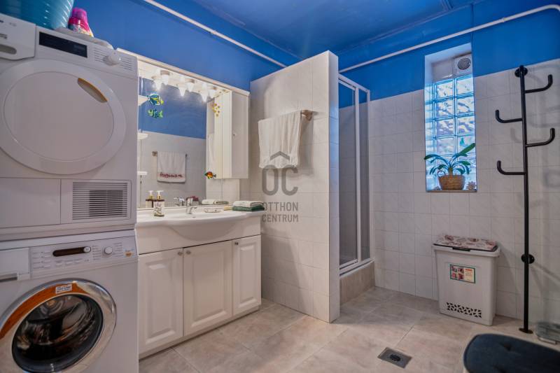 Ha olyan házat keresel, ahová tényleg csak be kell költözni, és ahol minden a helyén van, akkor ezt érdemes megnézned.Pestújhely egyik legcsendesebb, legkedveltebb kertvárosi részén, a Petrence utcában kínálunk eladásra egy két szinten összesen 189 m²-es, teljes körűen felújított, kiemelkedő műszaki és esztétikai színvonalú családi házat.Ez nem egy „jó adottságú ingatlan”, hanem egy átgondolt, élhető otthon, ahol a kényelem, a praktikum és az elegáns részletek természetesen simulnak össze.Terek, ahol jó lenniA világos, tágas helyiségek és a minőségi anyagok az első pillanattól érezhetők.A földszint szíve az egyedi tervezésű könyvtárszoba – ideális esti beszélgetésekhez, családi együttlétekhez vagy egyszerűen elvonuláshoz.A két, teljesen külön működő lakószintnek köszönhetően a ház tökéletesen alkalmas két generáció harmonikus együttélésére, vagy akár munkavégzés és privát élet kényelmes elkülönítésére, így kiváló:•két generáció együttélésére,•vagy lakás + iroda / vállalkozás elkülönítésére,•esetleg nagyobb család számára is.Amit ritkán kapsz egyben•6 szoba•2 önálló konyha•2 fürdőszoba + külön vendég-WC•Tömör bükk beltéri ajtók, tölgy parketta, spanyol kőporcelán burkolatok•Daikin klímarendszer, kondenzációs gázkazán•Napkollektoros melegvíz-ellátás•Finn relax szauna és Wellis gőzkabin – valódi otthoni wellness•Riasztó- és kamerarendszer, optikai internet•15 m²-es, árnyékolt teraszA kertAz 526 m²-es, gondosan karbantartott kertben 13 termő gyümölcsfa, bogyós gyümölcsök kaptak helyet. Mobilról vezérelhető, fúrt kútra kötött okos öntözőrendszer gondoskodik arról, hogy a kert minden évszakban a legszebb arcát mutassa.A tágas, 27 m²-es garázs elektromos Hörmann kapuval és a hozzá tartozó tároló épület tovább növeli a mindennapi kényelmet.Elhelyezkedés – ahol a nyugalom és a közlekedés találkozikA ház Pestújhely egyik legkellemesebb részén áll: csendes, nyugodt, családias környezetben, ugyanakkor néhány percre a busz- és villamosmegállótól, az M3 bevezetőtől és a Szentmihályi úttól.Innen a belváros és az elővárosok is gyorsan elérhetők – kompromisszumok nélkül.EnergetikaAz épület C energiabesorolása és a korszerű gépészet kivételesen alacsony fenntartási költséget garantál, így a teljes rezsi mindössze 32.000 Ft havonta.Jogi háttér Beköltözésre készen, hiszen az ingatlan per-, igény- és tehermentes, a beépített bútorok az ár részét képezik, a mozdítható berendezés pedig igény szerint megvásárolható.Kinek ideális?Annak, aki minőséget keres, nem felújítandó projektet.Aki hosszú távra gondolkodik.Akinek fontos a nyugalom, a tér és az, hogy a ház valóban kiszolgálja a mindennapokat.Ez a ház nem akar többnek látszani, mint ami – csak nagyon jól működik.Ez az ingatlan a \"Hűség csomag\" megbízási portfólióhoz tartozik. Részletek az Otthon Centrum weboldalán. |
