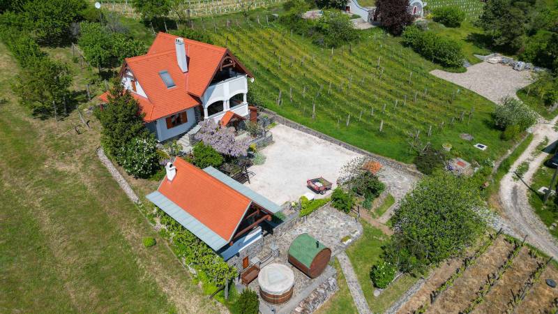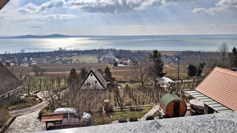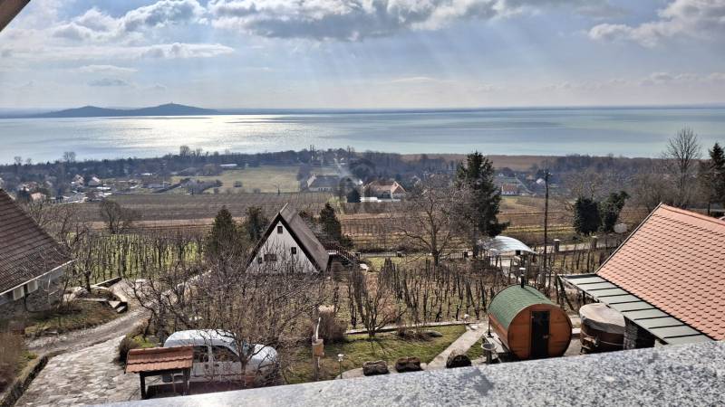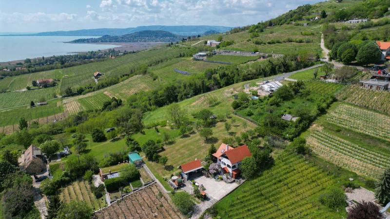 LENYŰGÖZŐ PANORÁMA A BALATON, FONYÓD ÉS A TANÚHEGYEK LÁTKÉPÉVELA Balaton északi partjának legjellegzetesebb, egyben legmagasabb hegye a Badacsony.Neve összeforrt a borkultúrával, de a kirándulók és a vízi sportok kedvelői számára is ideális.A szőlődűlők között fekvő ingatlan - együttes PÁRATLAN PANORÁMÁT NYÚJT A BALATONRA ÉS A KÖRNYEZŐ TANÚHEGYEKRE!KIEMELT MEGBÍZÁS AZ OTTHON CENTRUM KÍNÁLATÁBAN!A 2352 m2-es telken fekvő 150 m2-es FŐÉPÜLET télen- nyáron jól megközelíthető, így állandó otthonnak is alkalmasFőbb jellemzői:-2007- ben épült, tégla és kő felhasználásával - fa nyílászárók, mozgatható zsalukkal - fűtése villanykazán radiátorokkal, melyek a vízteres kandallóra is rá vannak kötve - vezetékes víz áll rendelkezésre,mely a badacsonyi hegyen ritka, valamint bővízű ásott kúttal és forrásvízzel is rendelkezik - a villany 2 mérőóra, mindegyikhez 3*25 A tartozik - a ház mindegyik szintjén klíma biztosítja nyári hőségben a kellemes hőmérsékletet - minden helyiségben működő riasztórendszer távfelügyelettelElosztását tekintve az alsó szinten konyha- étkező, teraszkapcsolatos nappali, mellékhelyiség, kint és bent is tároló került kialakításra.A felső szinten a napfényes nappalihoz szintén kapcsolódik egy terasz+ külön hálószoba és egy zuhanyzós fürdőszoba.Az épület alatt fogadótérrel rendelkező pince biztosít helyet nagyobb baráti összejövetelekhez.A TELEK: Szép időben a búbos kemencével,füstölővel, csikó tűzhellyel és grillel felszerelt szaletli tökéletes hely a kinti főzéshez, családi ebédhez vagy vacsorához. Az északi szél ellen üvegfüggöny nyújt védelmet. A szaletli alatt a kerti eszközök tárolására kialakított helyiség épült. Előtte pedig a relaxálást biztosító dézsafürdő és szauna kapott helyet. A ház előtti telekrész 3- 4 autó számára alkalmas parkolásra. A telek enyhén lejtős, alkalmas akár saját zöldségek, gyümölcsök és fűszernövények termesztésére.A VENDÉGHÁZ: - a jelenleg használt 22 nm-es lakrészben a konyha-étkező-háló mellett egy fürdőszoba került kialakításra - a ház hátsó részében található 14 nm-es borfeldolgozó átépítésével a lakótér növelhető - az épület oldalánál kialakított téli kert mozgatható elemekkel igény szerint nyitható-zárható - a lakótér fűtését az elektromos panelek mellett fatüzelésű kandalló is biztosítja -a felszerelt hűtő-fűtő klíma télen-nyáron gondoskodik a megfelelő hőmérsékletről - víz és villany bevezetve - riasztó rendszer bekötveA KERT:- a 839 nm-es területen lépcsőzetes kialakítású, bazaltkő támfallal tagolt fűszerkert található - a 25 nm-es fém üvegházban szinte minden megtermelhető - a parkolást fedett autóbeálló biztosítja, melyet elektromos kapu nyit - az épület előtti bazaltkővel kirakott terasz jó időben tökéletes helyszín a pihenésre, és a szabadtéri étkezésre lenyűgöző panorámával a Balatonra és a környező településekreAz ingatlan kifüggesztés köteles.Nagyobb családoknak tökéletes választás lehet ez a két külön épülettel rendelkező nyaraló, de akár kiadásra is elhelyezkedésének köszönhetően.Ha kérdése merült fel vagy szeretne időpontot egyeztetni, várom megtisztelő hívását a megadott elérhetőségeken!Használja ki ezt a ritka lehetőséget és nézzük meg együtt ezt a varázslatos ingatlant! |