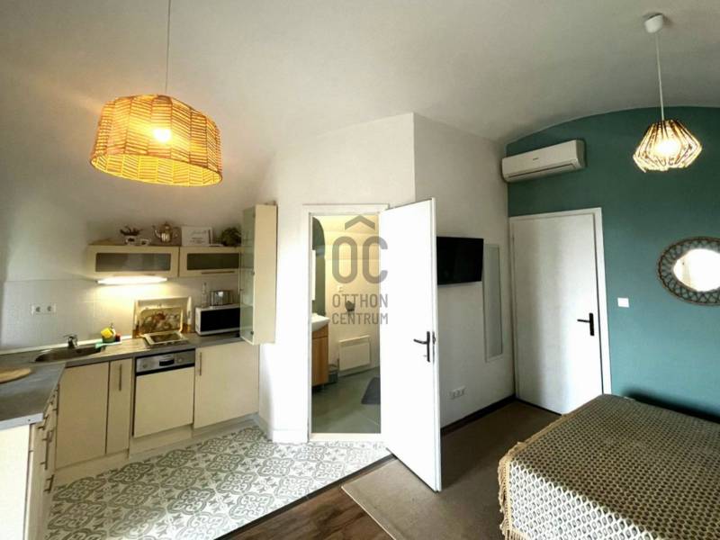 A Kisfaludy útról nyíló zsákutcában jó megközelíthetőséggel rendelkező felújított apartmant közel 50 nm terasszal ajánljuk figyelmébe. Az ingatlan főbb jellemzői: - A ház jelenleg használt 22 nm-es lakrészén a konyha-étkező-háló mellett egy fürdőszoba került kialakításra. - A ház hátsó részében található 14 nm-es borfeldolgozó átépítésével a lakótér növelhető. - Az épület oldalánál kialakított téli kert mozgatható elemekkel igény szerint nyitható-zárható. - A lakótér fűtését az elektromos panelek mellett fatüzelésű kandalló is biztosítja. - A felszerelt hűtő-fűtő klíma télen-nyáron gondoskodik a megfelelő hőmérsékletről. - Vezetékes víz – ami a hegyen kincs, és nem mindenhol elérhető rendelkezésre áll.- A 839 nm-es területen lépcsőzetes kialakítású, bazaltkő támfallal tagolt fűszerkert található- A 25 nm-es fém üvegházban szinte minden megtermelhető- Az autó tárolásra és beállásra fedett autótároló készült, melyet elektromos kapu nyit.- Az épület riasztó rendszerrel rendelkezik- Az épület előtti bazaltkővel kirakott terasz jó időben tökéletes helyszín a pihenésre, és a szabadtéri étkezésre lenyűgöző panorámával a Balatonra és a környező településekre.Ha kisméretű, könnyen karbantartható nyaralót keres, vagy szálláskiadásban gondolkodik, úgy tökéletes választás a meghirdetett ingatlan!Amennyiben felkeltettem érdeklődését, úgy várom hívását! |
