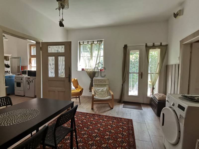 Révfülöp központjában, 10 perces sétára a kikötőtől, orvosi rendelőtől, patikától, városházától és a postától, egy csodálatos, régi, romantikus nagypolgári villaépületet talál, a Palágyi-Villát.Az 1920-as évek táján épült, hatalmas télikertes, kő falazatú ház az államosítást követően az önkormányzat által újra magánkézbe került. Két család lakta az \'50-es évektől, egy új lakrésszel kibővítve.Ezen formájában maradt meg a mai napig: az eredeti épület, saját kerttel az egyik családé; a bővítés, szintén saját kertrésszel a másiké, mindez hivatalos használati megosztással!Mindkét részhez saját kapu, autóbehajtó és privát kert tartozik!A régi villaépület, amelynek nettó hasznos alapterülete 105 nm, és 453 nm saját területen fekszik, most eladó! (tehát az épület nagyobbik része)A házat nagy belmagasság (310 cm) és tágas terek jellemzik, sem ázás, sem vizesedés nem tapasztalható, statikailag kifogástalan.A régi, hatalmas ablakos télikert déli tájolású, még télen is besüti a nap, a belső szobákat így védi és hőszigeteli.A háznak két bejárata van, egyik a télikert felől, másik a hátsó udvar felől. Összesen 4 nagy szoba (étkező, nappali, 2 hálószoba), egy fürdőszoba, egy külön wc, egy gardróbszoba és egy konyha található még benne.Elosztása praktikus, kényelmes színhelye lehet a révfülöpi nyaraknak még egy nagyobb család számára is.A kertben gyümölcsfák és dísznövények vannak, a hátsó udvari részben egy fedett tárolóhelyiség és egy nem használt kertrész is van (egykor baromfik számára)Az elektromos hálózat 15A, egy éve teljesen felújítva, a régi vezetékek mind kicserélve!Fűtéséről kályhák tudnak gondoskodni, mivel jópár éve csak nyaralóként használták, ezek ki lettek véve, az utóbbi időben elektromos fűtéssel oldották meg, ha fűteni kellett.Gáz a telken belül van, de nem lett bevezetve, a szennyvízhálózatra nem lett bekötve az épület, jelenleg emésztő van.Mesés, békés hangulatú ingatlan, amely kevés ráfordítással is élvezhető, de akár kiadásra is tökéletes, |