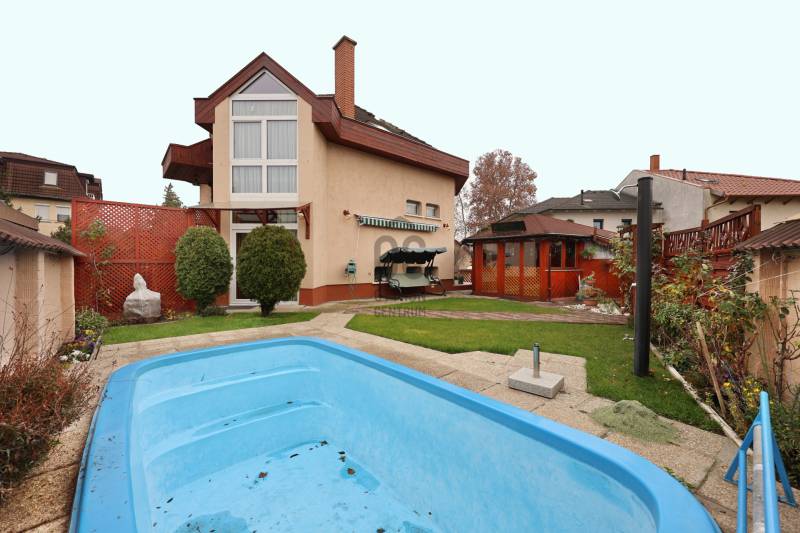Eladó családi ház Zugló frekventált, csendes részén – akár szomszédos ingatlannal együtt is!Zugló egyik nyugodt, kertvárosias utcájában kínálunk megvételre egy minőségileg kiváló, 1991-ben épült, folyamatosan karbantartott és szigetelt családi házat, amely ideális választás nagycsaládosoknak, többgenerációs együttélésre is.Főbb paraméterek:-Telek mérete: 439 nm-Lakóterület: bruttó 289 nm / nettó 245 nm-Építés éve: 1991-Állapot: jó minőségben megépített, masszív szerkezet-Belső elrendezés:-Tágas, világos 39 nm-es nappali-3 különnyíló szoba-2 fürdőszoba-2 beépített gardrób-Alsó szinten szauna, a teljes komfort jegyében-Parkolás:-3 gépkocsi számára beálló-1 különálló garázs az udvaron-Kert és extra lehetőségek:-Gondozott udvar-Medence-Különálló, kb. 40 nm-es, téliesített nyári konyha, amely tökéletes helyszíne baráti és családi összejöveteleknek,kemencével felszerelve.-Befektetési és bővítési lehetőség.A szomszédos ingatlan is eladó, amely:-435 nm-es telekkel-80 nm-es lakóházzal rendelkezikA két ingatlan külön-külön vagy egyben is megvásárolható. |