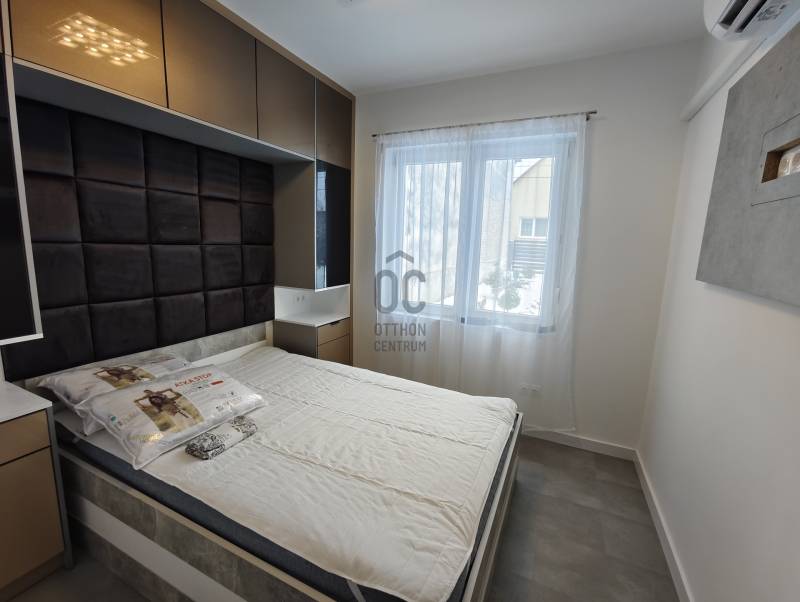Kiadásra kínálunk Székesfehérváron Maroshegyen a Sóstói Stadion közelében, egy újépítésű 51nm-es (bruttó62nm), nappali+2 szobás bútorozott házat.Az ingatlan teljes berendezéssel, minőségi konyhabútorral és beépített konyhagépekkel, mosó és szárítógéppel együtt kiadó.A ház belső kialakítása a mellékelt alaprajzon látható.A ingatlan jellemzői:-378m²-es telek-padlófűtés a fürdőszobában, mellékhelyiségben és a háztartási helyiségben-alacsony rezsi-terasz-központi riasztórendszer-video kaputelefon-elektromos kapu-inverteres hűtő-fűtő klímaBérleti feltételek:-közjegyző által készített bérleti szerződés -Maximum 3 fő számára kiadó-Minimum 1 éves bérleti szerződés-1 havi bérleti díj + 2 havi kaució-Kisállat NEM hozható!!!-Dohányzás kizárólag az udvaron megengedett!!!A ház elhelyezkedése mind tömeg, gyalogos, autós közlekedés szempontjából kiemelkedő.A közelben élelmiszerbolt, kozmetika, posta, gyógyszertár, 10 percre találhatóak.A bevásárlóközpontok közül az Interspar és a Praktiker van a legközelebb.További információkéréssel, megtekintéssel kapcsolatban keressen bizalommal! |