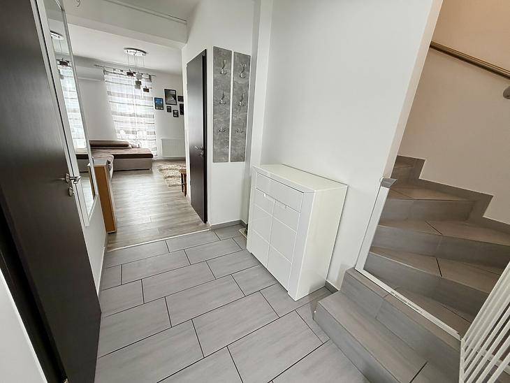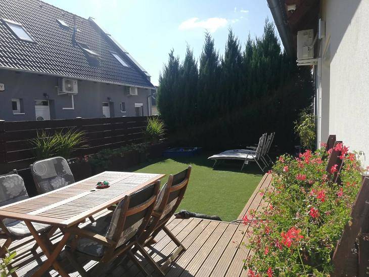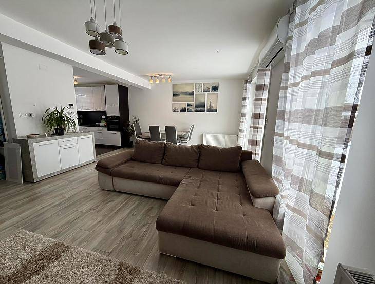 Vác kedvelt, nyugodt részén, a Csendesréti lakóparkban kínálunk megvételre egy 2020-ban épült, igényesen kialakított, belső kétszintes lakást. A lakópark kifejezetten családias hangulatú, barátságos közösséggel. Az ingatlan remek elosztású: az alsó szinten egy tágas előszoba fogad, innen nyílik az amerikai konyhás nappali, két praktikus kamra, valamint egy vendég WC. A nappaliból közvetlen kijárat vezet a 70 nm-es, privát, elkerített kertbe, ahol egy gondosan kialakított, terasz biztosít ideális helyszínt pihenéshez vagy baráti összejövetelekhez.Az emeleti szinten három külön nyíló szoba, egy WC-vel ellátott fürdőszoba, valamint egy padlástér található, amely kiválóan alkalmas tárolásra. A lakás műanyag nyílászárókkal rendelkezik, minden ablak redőnnyel és szúnyoghálóval felszerelt, a fűtést kondenzációs gázkazán biztosítja, emellett padlófűtés és két darab hűtő-fűtő klíma gondoskodik a komfortérzetről mindkét szinten. Az épület kiváló hang- és hőszigeteléssel rendelkezik (Silka falazat, 12 cm szigetelés), a lakáshoz pedig saját parkolóhely is tartozik. A vételár részét képezik a szülői hálószobába egyedileg tervezett gardróbszekrény, valamint a teljes gépesítéssel ellátott konyhabútor és a fürdőszobabútorok is.Az autópálya közelségének köszönhetően a közlekedés gyors és kényelmes, akár Budapestre ingázóknak is tökéletes.A buszmegálló körülbelül 500 méterre található, így gyalogosan is könnyen és gyorsan megközelíthető. A vasútállomás nagyjából 1,5 kilométerre helyezkedik el. Ennek köszönhetően a tömegközlekedés is kiváló és kényelmes megoldást nyújt.Kérdésével, illetve megtekintési szándékával keresse irodánkat.Amennyiben hitelre lenne szükségük új otthonuk megvásárlásához, profi hitelközvetítő kollégáink díjmentesen állnak rendelkezésükre. |