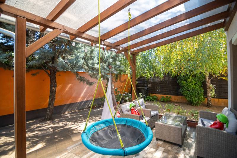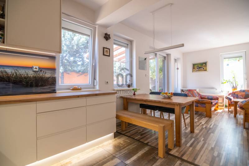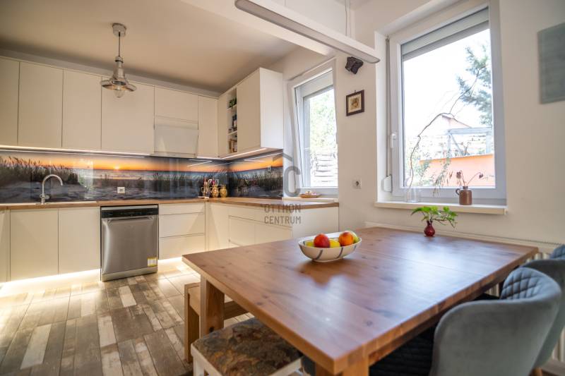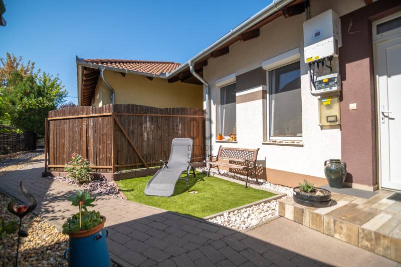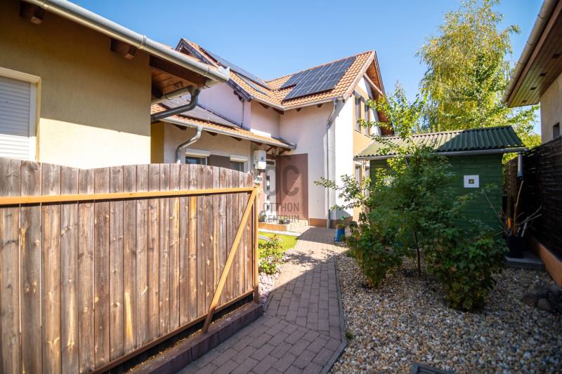 Napelemmel felszerelt ikerház eladó Újpéteritelepen!Megvételre kínálunk egy jó elosztású, jó állapotú kertes ikerház hátsó részét Újpéteritelepen!Az ingatlanról:✔️ 113 m2-es, nappali+ 4 hálószobás (Tulajdonilapon 96 m2-es, mert a garázst végül szobává alakították de így összesen 113 m2)✔️ földszinten: nappali-étkező-konyha, előszoba, fürdőszoba, 1 szoba.✔️ fedett terasz 12 m2✔️ Kert: 328 m2✔️ emeleten: 3 szoba, fürdőszoba, közlekedő.✔️ minden szoba külön nyíló✔️ ablakok műanyagok redőnnyel és szúnyoghálóval.✔️ nappali keleti tájolású✔️ fűtése: kombi cirkóval működik, mindenhol radiátorok illetve a földszinten a szobán kívűl mindenhol padlófűtésA ház 2016-ban épült 30 cm vastag téglából.A betoncserép tetőn elhelyezett napelemek segítik az áramszámla alacsonyan tartását.10 cm szigetelés.Az ingatlanhoz tartozik egy kerti tároló is.Jogilag társasház.Parkolni telken belül 3 autóval lehetséges illetve a ház előtt.Közelben minden megtalálható ami fontos a mindennapokhoz!✔️ CSOK+ és sima normál banki hitelre is alkalmas ingatlan!Ha felkeltette érdeklődésedet keress nyugodtan a hét bármelyik napján! |