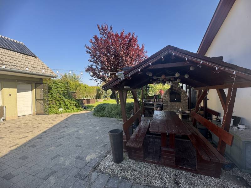 Képzelje el, hogy egy olyan otthonra talál, amely a családja igényeit maximálisan kielégíti!Ezt a csodálatos lakóingatlant Győr-Moson-Sopron megye szívében Vámosszabadin kínáljuk eladásra. Az ingatlan 2001-ben épült, falazata ytong, alapterülete 135 négyzetméter, amely nappali+ 3 szobával rendelkezik, biztosítva ezzel a család minden tagjának a megfelelő teret és magánszférát.A 25 négyzetméteres terasz,kerti kiülő,grillező és kemence tökéletes helyszínt biztosít a családi összejövetelekhez vagy a pihenéshez, míg a rendezett kert igazi zöld oázist teremt a mindennapokban,öntözése fúrt kútról megoldható.Megtalálható a telken egy dupla garázs, mely fűthető is.Az ingatlan fűtése gázkazánnal történik, amely mellett napelemek is találhatók, így nemcsak környezetbarát, hanem gazdaságos megoldás is.A környék biztonságos és csendes, ideális a családos élethez. A közlekedési lehetőségek is kitűnőek: a város központja könnyen megközelíthető autóval és tömegközlekedéssel egyaránt. A közelben található iskolák, óvodák és bevásárlási lehetőségek mind hozzájárulnak ahhoz, hogy a mindennapi élet zökkenőmentes legyen. Ez az ingatlan nem csupán egy ház, hanem egy otthon, ahol a család együtt élheti meg a mindennapokat, és ahol a gyerekek biztonságban nőhetnek fel. Ne habozzon, hiszen az ilyen lehetőségek gyorsan elkelnek! Bizalommal kereshet minket kérdéseivel a hét minden napján és szívesen segítek Önnek abban, hogy megtalálja álmai otthonát. |