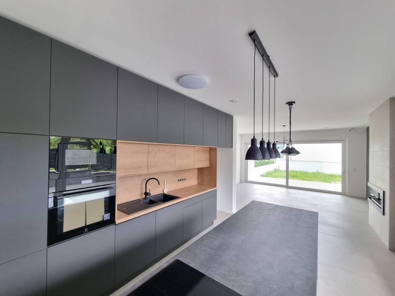 3.ker, Aranyhegyen, jól megközelíthető helyen aszfaltos utcában, panorámás , PRÉMIUM katgóriás 170 m2-es, nappali + 4 szobás +2 félszobás családi ház, nagy múltú beruházótól , dupla garázzsal eladó.A telken 3 db külön álló , szeparált családi ház található.A teljes ház prémium anyagokkal lett megépítve, mind a külső mind a belső tekintetében.Belső építész által tervezett koncepció alapján kerültek kiválasztásra a kiváló minőségű burkolatok, prémium szaniterek és egyedi gépesített konyhabútor.A ház teljesen elkészült, azonnal költözhető. Használatbavétellel is rendelkezik.Az ingatlan fekvése délnyugati, így egész nap világos.Földszinten található:Előtér, vendégszoba/dolgozószoba, zuhanyzó, gépészet-mosókonyha, amerikai konyhás nappali.Emeleten:Közlekedő, 1 master bedroom saját fürdővel és gardróbbal, 2 további hálószoba, 1 fürdőszoba.A ház paraméterei:- nettó lakótér: 131m2- teraszok: 42m2- dupla garázs: 36m2 (benne van az árban)Műszaki tartalom:- Gépészet: hőszivattyú, melegvíz tartállyal, mennyezet fűtés és hűtés, padlófűtés.- Szellőztető rendszer, párásítással és szárító funkcióval.- Vízlágyító.- Konyhai szellőzés tető fölé vezetve.- Elektromos törölköző szárító radiátoroknak kiépítés.- Kertben kerticsapnak kiállás.- Szülői háló teraszán elektromos és gépészeti kiállás jakuzzinak.- Okosotthon rendszer kiépítve. TAP Home rendszer.- Külső elektromos kiállások.- Hofstädter prémium ablakok és bejárati ajtó, zsalúzia minden ablakon.- Prémium belső burkolatok, a parketta mindenhol szalagparketta (Bécsi parketta) – nem laminált.- Belső nyílászárók valódi fa furnérozott ajtók (Porta door), nem fóliázott ajtók.- Szaniterek (kád, zuhany, mosdók, wc-k), prémium márkák (Grohe, Ravak), a mosdószekrények is beépítésre kerültek.- A riasztó rendszernek kiépítve a kábelezése, a nyílászárókban nyitásérzékelő kiépítve.- Teraszokon Üvegkorlát került elhelyezésre mindenhol.- Az összes belső lámpa beépítésre került.- A konyha is beépítésre került, a hűtő kivételével az összes gépet is tartalmazza.- Külső homlokzatra Travertin és Antracit Brazil pala kőburkolat került felhelyezésre.- 15 cm – grafitos hőszigetelés a falakon és erkélyeken.- Tetőn 22cm + hőszigetelés. A padló alatt 12 cm hőszigetelés.A kiváló energetikai tulajdonságoknak köszönhetően az üzemeltetési költségek rendkívül alacsonyak!VÁROM HÍVÁSÁT, AKÁR HÉTVÉGÉN IS, MINDEN NAP REGGEL 8-TÓL ESTE 10-IG. |