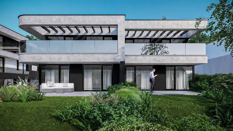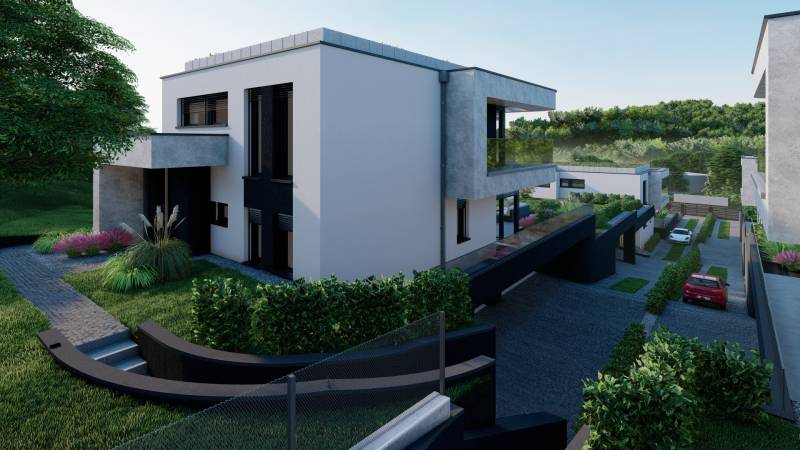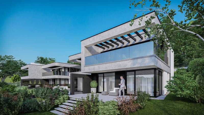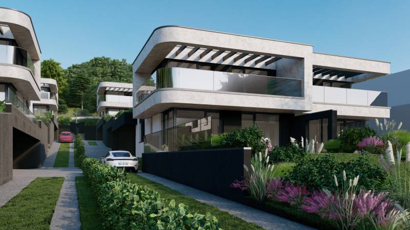 Válassza egy LUXUS otthon kényelmét, lenyűgöző PANORÁMÁVAL.Az ingatlan magában foglalja a csodás kilátást, a magas minőséget és a kedvelt lokáció nyújtotta nagyvárosi eleganciát.A hőszivattyúval felszerelt otthon kellemes klímát biztosít, valamint mennyezeti hűtés-fűtés gondoskodik az évszaktól független optimális hőérzet fenntartásáról.Az épület külsőleg kiemelkedően jó hőmegtartó képességű 20 cm vastag grafitos szigetelést kapott, ezzel biztosítva az ingatlan kedvező fenntartási költségei a téli hónapok során.Az építtető kiemelt figyelmet fordított a tervezés során a házak intimitásának előtérbe helyezésére, ennek nyomán a házak találkozásánál Sylka hang gátló tégla kerül beépítésre, ezzel minimalizálva a két házrész közötti áthallást.A telken 8 ikervilla kerül felépítésre, melyek mindegyikéhez sajáthasználatú kertrész valamint akár 3 autó parkoltatására alkalmas saját használatú önálló garázs is tartozik.Az ingatlan várhatóan 2025 nyarán kerül átadásra.A környék infrastruktúráját tekintve, nagyon jól ellátott a közelben számos bevásárlási lehetőség (Aldi, Lidl, Auchan) valamint óvoda iskola található.A város busszal, illetve vonattal csupán 25 perc alatt könnyedén megközelíthető.Amennyiben felkeltette érdeklődését az ingatlan, keressen bizalommal, akár hétvégén is! |