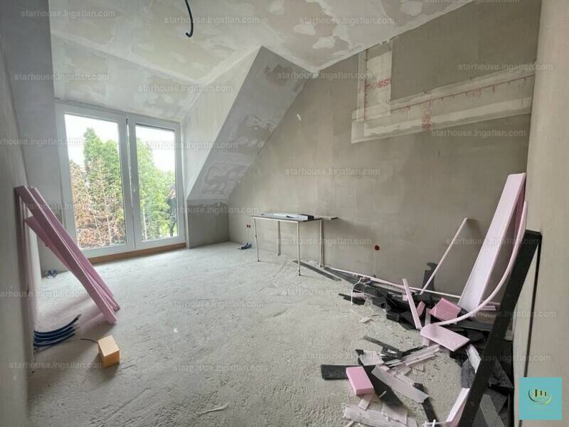 Bp. 3.kerület, Csillaghegyen, kifejezetten csendes utcában, kiváló közlekedésnél, Csillaghegy Duna felőli oldalán ,csendes családi házas övezetben eladó egy nappali-amerikai konyhás, saját, szeparált kerttel rendelkező nappali + 3 szobás ( a garázs átalakítható egy 4. szobává) , igényes kialakítású ikerfél, 20 m2-es terasszal garázzsal.A kisforgalmú, kertvárosi hangulatú utca infrastruktúrája kiváló. A közelben található a HÉV és a BKK. buszok megállói. A környéken számos bölcsőde, iskola, óvoda ,és bevásárlási lehetőség található.A Duna part és a Római part közelsége ,számos kikapcsolódási ,és sportolási lehetőséget kínál.A külön bejárattal rendelkező kert, és épületrészek egymástól szinte teljesen szeparáltak.A nappalihoz 24m2-es terasz, és külön kertrész kapcsolódik.A házhoz tartozik garázs, amely igény estén plusz szobává alakítható.Ezen kívül a ház mellett, több autó részére van beállási lehetősége is.A ház kívülről a színezésen kívül készen van. Belső munkák folynak jelenleg.Belső burkolatok, és ajtók még választhatóak, ár- értékhatárig.A lakás kb. szeptemberben költözhető.LEÍRÁS:Nappali +3szoba, igény szerint +1 szoba a garázsból kialakítható2 fürdőszobaParkolás: garázs, kerti beálló.Saját telekrész:313,5M2.MŰSZAKI LEÍRÁS:-30 cm-es falazat 10 cm-es grafitos hőszigeteléssel-10 cm-es válaszfalak-fűtés: hőszivattyú padlófűtéssel-tetőn 3 X10 cm-es kőzetgyapot hőszigetelés-3 rétegű üvegezésű, antracit szürke nyílászárók-redőnytokkal elektromos redőny előkészítése-acél bejárati ajtó-geberit wc-k-klíma alapszerelés-teljes 24 zónás riasztórendszer (nyílászárókon nyitásérzékelőkkel)-1 X32 Amper áram + H tarifa-opcionálisan Fancoil fűtésrendszer-elektromos garázskapu, elektromos kertkapu-kaputelefon-lemosható beltéri falfesték fehér alapszínben-napelem előkészítésA ház kívülről a színezésen kívül készen van. Belső munkák folynak jelenleg.Belső burkolatok és ajtók még választhatóak, ár- értékhatárig.Szeptemberi átadás.VÁROM MEGTISZTELŐ HÍVÁSÁT, AKÁR HÉTVÉGÉN IS. |