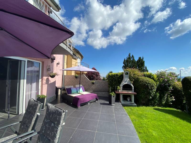 LAKJON EXKLUZÍV KÖRNYEZETBEN, ELVEHETETLEN PANORÁMÁVAL.We speak english, please, do not hesitate, just call us for further informaiton.Parliamo italino , non esitate a contattarci per qualsiasi ulteriore informazione/ necessitá.Testvérhegyen, csendes, átmenő forgalomtól mentes utcában , Budapest kiemelt körzetében , az Árpád hídtól pár percre ,eladó egy 2000-ben épült, 2020-ban részben felújított, kiváló elosztású, igényes kerttel rendelkező , napfényes, jó elosztású, 300 nettó m2-es, ALACSONY REZSIJŰ CSALÁDI OTTHON, egy SZEPARÁLT IKERFÉL, nagy teraszokkal, 610 m2-es gondozott kerttel, 2 állásos garázzsal.MŰSZAKI TARTALOM:Szerkezet: 30 cm-es poroton tégla külső falak, monolit vasbeton födémekkülső-belső Knauf hőszigetelési rendszer2 rétegű üvegezésű nyílászárókWolf állókazán+melegvíztárolópadló és radiátoros fűtés, törölköző szárítókautomata garázs+kertkapuegyedi konyha nagy, ívelt pultfelülettel, beépített gépekkelszintenként állítható riasztórendszer távfelügyelettelAz épületet az ívelt falak és lépcsők, tartóoszlopok, körgaléria és szinteltolás teszik különlegessé. Ehhez a kialakításhoz igazodnak az egyedi beépített bútorok, polcrendszerek, tárolók.Nagyméretű teraszok (É,D) kertkapcsolattalKERT:A kertben az öntözést Rainbird öntözőrendszer biztosítja.A vízhasználatot leválasztott, külön leolvasású locsolómérő méri, igy ennek használata nem terheli a csatorna számlát.A ház erttervező által tervezett, gondozott kerttel rendelkezik. Nagyon kellemes nyáron a kertben pihenni, amelynek intimitását a formatervezet növények ölelése szolgáltatja.Kerti kőgrill és külön bográcsozó hellyel, kerti gyerekjátszóval, csúszdával, hintával felszerelt.GARÁZS:A ház lakói 2 autóval a garázsba és egy autóval egy külön beállóhelyre tudnak kényelmesen parkolni.KÖZLEKEDÉS.Közeli buszmegálló, óvoda, iskola (British School, AKG), orvosi rendelő,bevásárlási lehetőségek (Tesco, Eurocenter, Praktiker, Stop Shop).A sportolást a közeli erdő, a Golf Klub, konditermek, Margitsziget közelége teszik lehetővé.A HÁZ SZINTJEI:ALSÓ SZINT28,67 m2 pihenő, sport helyiség27,79 m2 garázs 2 autó számára8,54 m2 mosókonyha, kazánház7,49 m2 szauna6,60 m2 kamra5,62 m2 kamra4,41 m2 közlekedő4,14 m2 tároló4,29 m2 tároló97,55 m2 összesenFÖLDSZINT32,53 m2 nappali26,36 m2 amerikai konyha + étkező10,41 m2 közlekedő tér5,10 m2 lépcső4,72 m2 előtér3,33 m2 kamra2,56 m2 vendég WC85,01 m2 összesenEMELET19,65 m2 szoba14,73 m2 szoba9,65 m2 szoba7,08 m2 fürdőszoba5,97 m2 fürdőszoba3,13 m2 gardrób2,90 m2 gardrób9,08 m2 galéria11,97 m2 közlekedő5,06 m2 lépcső89,22 m2 összesenTETŐTÉR60 m2 a hasznos terület az összesen 90 m2-ből, ahol nappali + amerikai konyha + étkező, hálószoba, fürdőszoba, gardrób helyezkedik el.Ezt az önálló lakásnak is megfelelő szintet igény esetén le lehet választani a háztól és kialakítható külön bejárat a kertből.Az ingatlan rugalmasan megtekinthető, egyeztetés után akár hétvégén is. |