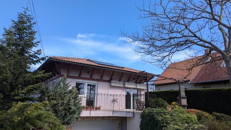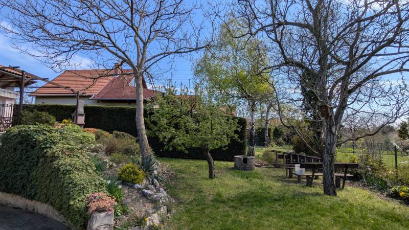 Eladó igényes, saját részre épített családi ház Budafok csendes részén – 108 m² + 36 m² mélygarázs, gyönyörű parkosított kerttelBudafok legfelkapottabb kertvárosi részén, a Tegzes utca környékén lévő, csendes kis utcában, egy 760 m²-es, saroktelken elhelyezkedő, gondosan megépített, kiváló állapotú családi ház eladó. Az ingatlan 2006-ban saját részre épült, pince + földszint kialakítású, összesen a garázzsal együtt 132 m² hasznos alapterülettel.Főbb jellemzők:-Alapterület: 132 m² (nappali + helyiségek + garázs) +25 m² terasz-Telek mérete: 760 m² – gondozott, parkosított kerttel, gyümölcsfákkal, kerti sütögetővel-Építés éve: 2006-Energetikai besorolás: DElosztás, helyiségek:-Tágas nappali-2 hálószoba + 1 félszoba (dolgozó/gardrób célra is alkalmas)-Gardróbszoba-Külön konyha + kamra-10 m²-es fürdőszoba (zuhanyzó + kád)-Külön WC-25 m²-es déli fekvésű terasz közvetlen kertkapcsolattal és sziklakerttelGépészet, extrák:-Fűtés: Gázkazán padlófűtéssel + radiátorokkal-Melegvíz ellátás: Napkollektor + melegvíz-tartály (puffertartályos rendszer)-3 db hűtő-fűtő klímaberendezés-Vízlágyító berendezés-Riasztórendszer-Műanyag nyílászárók redőnnyel, fa beltéri ajtók-Burkolatok: parketta és járólap kombináció-Hőszigetelt padlásfödém-Falazat: tégla, 10 cm külső szigeteléssel-Tető: Bramac betoncserép, sátortetős kialakítás, napkollektorral a déli oldalonParkolás, garázs:-36 m²-es, fűtött mélygarázs, elektromos garázskapukkal – akár 2 autó számára-Kerti beálló egy további autónak-Automata kapu és garázsajtókKözművek:-Teljes összközműves ellátottság: víz, villany, gáz, csatorna-Elektromos kapu és riasztó rendszerKiváló közlekedés: Mindössze 10 perc alatt elérhető Kelenföld vasútállomás és a 4-es metró végállomása, így a város bármely pontja könnyen megközelíthető. Autóval több útvonalon keresztül is gyorsan elérhető a belváros, míg az Allee bevásárlóközpont és a budaörsi nagyáruházak mindössze 10–15 perces autóútra találhatók. Közelben lévő buszjáratok: 150, 150B, 250, 250B, 251, 251A, 251BEz a Budafok kertvárosi részén található ingatlan tökéletes választás családok számára, akik minőségi kivitelezésű, jól megtervezett otthont keresnek nyugodt környezetben, mégis kiváló közlekedéssel és infrastruktúrával.Ne hagyja ki ezt a remek lehetőséget – tekintse meg személyesen is! |