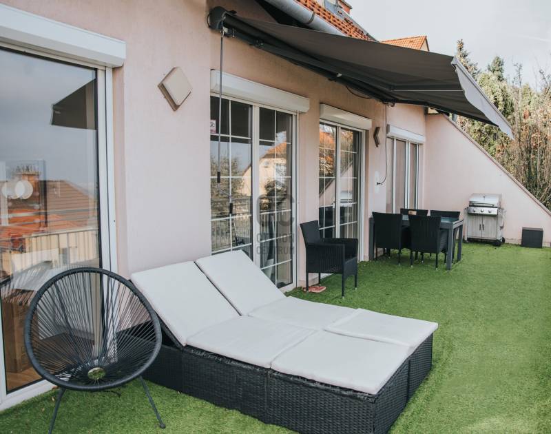 Családosok figyelmébe ajánljuk ezt a frissen felújított, kiváló állapotú, 135 négyzetméteres lakást Budapest 03. kerületének csendes és zöld Mátyás-hegy városrészében. Az ingatlan tökéletes választás lehet mindazok számára, akik egy világos, tágas otthonra vágynak, ahol a természet közelsége és a városi élet előnyei egyaránt megtalálhatók. Az ingatlan bútorozott, így azonnal költözhető, ami különösen előnyös a családok számára, akik nem szeretnék az új lakás berendezésével tölteni az idejüket. LAKÁS: Zárt lépcsőházból jutunk a teljes szintet elfoglaló középső lakásba, a házban csupán felettünk és alattunk van 1-1 szomszédos lakás.A lakás fényárban úszik, körbe napozott a rengeteg üvegfelületen keresztül.Az előszoba - nappali - étkező -konyha egy légteret képezve 55 m2-es területen adja meg a tágas életteret a gyönyörű panorámával és teraszkapcsolattal. A hatalmas teraszt műfűvel fedtük, így még inkább kert hangulatát kelti, nyári baráti összejövetelek, sütögetések ideális helyszíne. Az előszobából külön WC nyílik. A folyosóról közelíthető meg a 3 tágas háló, melyek 22, 20 és 13 m2-esek. A középső méretű hálóból a hátsó kis teraszra jutunk. Egy dupla mosdós nagy sarokkádas fürdőszobán kívül külön zuhanyzó is rendelkezésre áll, itt található a kondenzációs kazán és a mosógép is. A lakás klimatizált, a fűtés okostelefonról is vezérelhető, a terasz elektromos napellenzővel árnyékolt. Az ingatlant pár éve teljesen felújítottuk, riasztó és biztonsági ajtó védi a benne lakókat.Minden gépet és bútort a lakásban hagyunk -amire nincs szükséges a bérlőnek azt természetesen elvisszük.REZSI: Közös költség összesen 49ezer Ft, a fűtési és villanyköltség rendkívül alacsony, 4 fős családnak, előbbi 17 ezer Ft utóbbi 7 ezer Ft volt havi átalányban. A Mátyás-hegy városrész nemcsak a zöld környezetéről ismert, hanem a biztonságos és csendes utcáiról is. A környék ideális helyszín a gyermekek számára, hiszen számos iskola, óvoda és játszótér található a közelben. Az autóval közlekedők számára a belváros hamar elérhető. Ez a hegyvidéki ingatlan nem csupán egy lakás, hanem egy otthon, ahol a családok együtt élhetik meg a mindennapok örömeit. Amennyiben további kérdései lennének, vagy szeretné megtekinteni ezt a különleges ingatlant, bizalommal kereshet minket. Szívesen állunk rendelkezésére, hogy segítsünk megtalálni az Ön számára legmegfelelőbb otthont. |