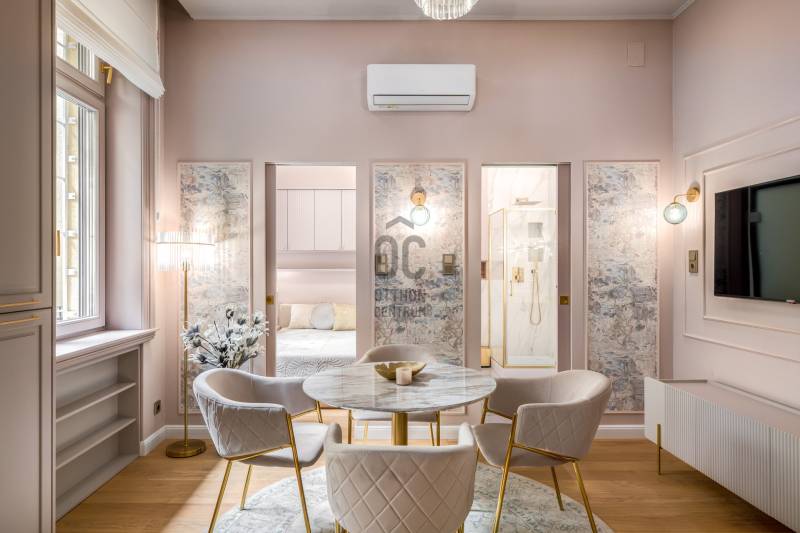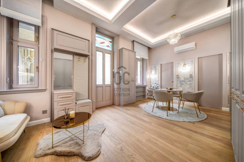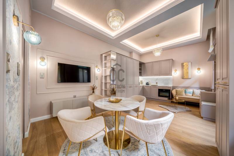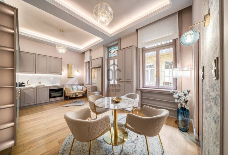 Budapest egyik legkedveltebb részén, az V. kerületben, a Duna közvetlen közelében kiadó egy liftes társasház 3. emeletén található, teljes körűen felújított, luxus kivitelű garzon lakás.Az ingatlan nappali + háló elrendezésű, modern és letisztult stílusban berendezett. A lakás teljesen bútorozott és gépesített, azonnal költözhető. A felújítás során kizárólag prémium minőségű anyagok és berendezések kerültek beépítésre.Főbb jellemzők:V. kerületi elhelyezkedés, Duna-part pár perc sétáraLiftes, rendezett társasház3. emeleti lakásTeljesen felújított, luxus kivitelNappali + külön hálórészTeljesen bútorozottGépesített konyha (beépített készülékek)Igényes, modern fürdőszobaVilágos, csendes lakásA lakás ideális választás igényes bérlők, diplomaták, üzletemberek vagy belvárosi életstílust kedvelők számára. Kiváló közlekedés, éttermek, kávézók, bevásárlási lehetőségek a közelben. Hosszú távra kiadó, azonnal költözhető. |