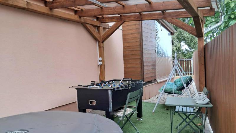 Hajdúnánás egyik legjobb elhelyezkedésű ingatlana keresi új tulajdonosát. Debrecentől mindössze 50 km-re, a híres gyógy- és élményfürdő közvetlen közelében található ez a minden igényt kielégítő, teljes körűen felújított családi ház. Az ingatlan jelenleg prémium apartmanként üzemel, stabil, visszatérő vendégkörrel, így azonnal folytatható, jövedelmező vállalkozásként működtethető.A kétszintes épület kialakítása praktikus és sokoldalú: három különnyíló félszoba és két tágas nappali biztosítja a kényelmet akár nagyobb család, akár vendégek számára. Az ingatlan különlegessége a hatalmas, téliesíthető terasz, amely ideális helyszíne baráti összejöveteleknek, családi vacsoráknak vagy egyszerűen a nyugodt pihenésnek. A parkosított, gondozott udvarban fűthető jacuzzi, szalonnasütő és bográcsozóhely is helyet kapott, így a kikapcsolódás télen-nyáron garantált.A ház a teljes berendezéssel együtt eladó, így az új tulajdonosnak semmilyen további beruházásra nincs szüksége: az ingatlan azonnal birtokba vehető, tovább üzemeltethető jövedelmező szálláshelyként. A lokáció turisztikai szempontból kiemelkedő: a gyógyfürdő mellett néhány lépésre egy kristálytiszta vizű horgásztó található, amely a természetkedvelők és a horgászat szerelmeseinek nyújt kikapcsolódást. Nem véletlen, hogy a szálláshely értékelései kiemelkedőek, vendégei elégedetten térnek vissza.Ez az ingatlan stabil befektetési lehetőséget kínál. Amennyiben Ön is egy biztos alapokra épülő, értékálló megoldást keres, ne várjon tovább. Vegye fel a kapcsolatot még ma, és tekintse meg személyesen ezt a különleges lehetőséget Hajdúnánáson! |