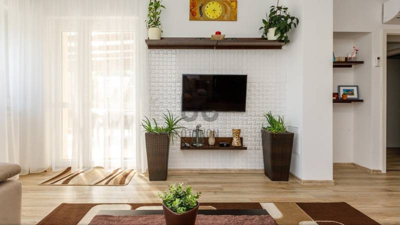 agy családosok számára ideális otthont kínálunk eladásra, amely a gyönyörű Zala vármegye szívében, Gyenesdiáson található. Ez az újszerű ház 125 négyzetméteres alapterületével és 750 négyzetméteres telek méretével bőséges teret biztosít a kényelmes élethez. Az ingatlan nappali 4 hálószobával és két fürdőszobával rendelkezik, így tökéletes választás lehet nagyobb családok számára, akik a tágas nappali és az amerikai konyha nyújtotta lehetőségeket keresik. A ház egyedi tervezésének köszönhetően a világos és barátságos belső terek a beépített bútorok és szekrények révén maximálisan kihasználják a rendelkezésre álló helyet. A 12 négyzetméteres terasz illetve kerti grillkonyha ideális helyszín a családi összejövetelekhez, míg a rendezett kert és a kerti tároló lehetőséget biztosít a szabadidős tevékenységekhez. Az automata öntözőrendszer pedig megkönnyíti a kert karbantartását, így Ön több időt tölthet a családjával. A környék ellátottsága kiváló, hiszen a közlekedési csomópont közelsége miatt a közlekedés kitűnő, így könnyedén elérheti a város fontosabb részeit. Gyenesdiás nem csupán a csendes, békés környezetéről híres, hanem a családbarát közösségéről is. Az ingatlan tehermentes,és rendezett tulajdonviszonyokkal rendelkezik, így azonnal birtokba vehető, ami még vonzóbbá teszi a vásárlás lehetőségét. A környék biztonságos, csendes, és a családok számára ideális, hiszen számos szabadidős tevékenység, iskola és bolt található a közelben. Keszthely város közelsége lehetővé teszi a kulturális események és programok könnyű elérhetőségét, így a család minden tagja megtalálhatja a számára megfelelő kikapcsolódási lehetőséget. Ez a prémium kivitelezésű ingatlan tökéletes választás lehet azok számára, akik egy kényelmes, modern otthonra vágynak egy felkapott környéken. Ne habozzon, hiszen az ilyen lehetőségek gyorsan elkelnek! Kérdéseivel bizalommal kereshet minket, szívesen állunk rendelkezésére, hogy segíthessünk megtalálni álmai otthonát vagy befektetési lehetőségét. |