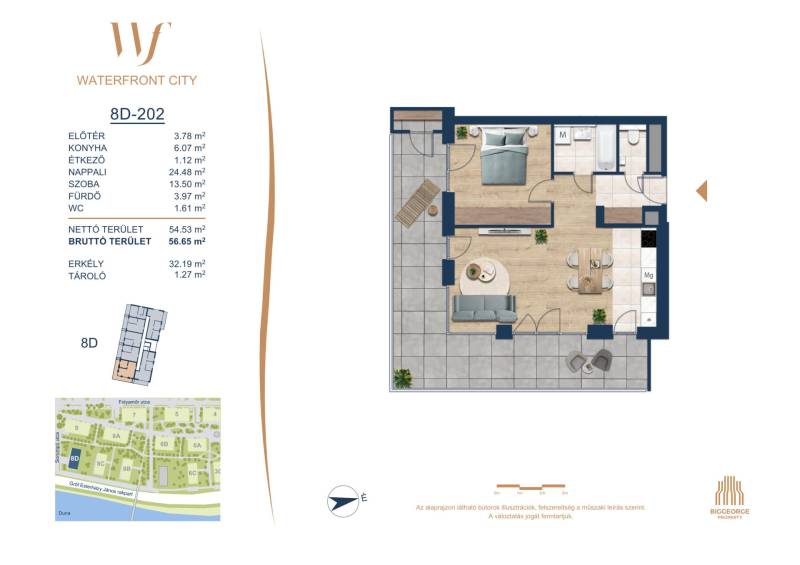 Projekt bemutatásaA projektrőlA Waterfront City egy új, modern városnegyed a 3. kerületben, ahol a természet közelsége és a városi kényelem tökéletes egyensúlyban van. A Duna-part közvetlen szomszédságában elhelyezkedő fejlesztés különleges atmoszférát kínál: a sétányt új épületek határolják, üzletekkel, kávézókkal és szolgáltatásokkal, amelyek élhető közösségi teret teremtenek.A 13 emeletes lakóépületből lenyűgöző örökpanoráma nyílik a budai hegyekre és a folyóra, a tágas teraszok pedig ideálisak a pihenéshez vagy a baráti összejövetelekhez. A zöldtetők, parkosított terek és fenntartható megoldások – mint az energiatakarékos rendszerek és okos otthon funkciók – mind hozzájárulnak a modern, környezettudatos életstílushoz.Látogass el értékesítési irodánkba, és tekintsd meg a városnegyed makettjét személyesen! Ismerd meg, milyen lesz az élet Budapest egyik legizgalmasabb új fejlesztésében!Óbuda szívébenKépzeld el, ahogy egy napsütéses délelőttön Óbuda szívében sétálsz, a Duna közelsége frissítően hat rád, miközben a Folyamőr utca, a Miklós tér és a Bogdáni út által határolt, öt hektáros területre érsz. A levegőben ott van a város történelme, mégis minden részletében a jövő hívogat.A 50 000 négyzetméteres területen egy hangulatos sétány vezet végig, amely egyenesen az óbudai Fő térre visz – mindössze 600 méterre. Ez a sétány nem csupán összeköt, hanem élményt nyújt: a Kolosy térről induló Óbudai Promenád részeként a város egyik legélhetőbb, legpezsgőbb szakaszán haladsz végig. És ha biciklivel érkeznél? A nemzetközi kerékpárút is itt halad el, Szentendre felé vezetve.Az 5. ütemben épülő 149 lakás mindegyike egyedi hangulatot kínál. Ahogy belépsz egy-egy otthonba, a hatalmas üvegfelületeken át beáradó fény és a tágas, szellős terek azonnal magukkal ragadnak. A kilátás? A Kaszap István park zöldje nyújt békét, míg a felsőbb emeletekről a Budai-hegység örökpanorámája tárul eléd – minden nap egy új festmény az ablakodban.A 6. ütemben 316 modern lakás épül, tágas teraszokkal és lenyűgöző kilátással a Dunára és a budai hegyekre. A lakók kényelmét őrszolgálat, kamerarendszer, mélygarázs, vendéglátóhelyek, belső park, játszótér és E-autó töltők szolgálják. Ez a projekt utolsó üteme, amely még közvetlen Duna-parti kapcsolattal rendelkezik. |