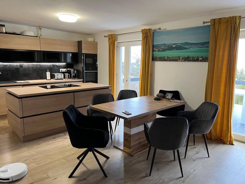 Ábrahámhegy, örök panorámás nyaralóÁbrahámhegy festői környezetben a Balaton északi partján az Örsi hegy és a Tapolcai-medence tanúhegyeinek karéjában, a Burnót patak völgyében megbúvó 550 fős település, Révfülöp és Badacsony között.A település belterületi részén örök panorámás nyaraló keresi igényes, új tulajdonosát.A háromszintes tégla építésű ház 190 nm hasznos alapterülettel rendelkezik.2023 -ban teljes körű felújításon esett át , minőségi alapanyagok, burkolatok felhasználásával.A földszint elosztása - nagyméretű , tágas amerikai konyha- nappali , 3 hálószoba, fürdőszoba , fedett ,és nyitott teraszkapcsolat .Az emeleti szint - 2 hálószoba, fürdőszoba ,amerikai konyhás nappali, 2 db panoráma erkély.A tetőtérben - amerikai konyhás nappali, hálószoba, fürdőszoba, gardrób kialakítás.Közművek bevezetve, az otthon melegét infra padlófűtés ,inverteres klíma berendezések és kiépített napelem rendszer biztosítja.Szintenként külön bejárattal rendelkező lakóterek.Az 1000 nm -es telek felújítása még folyamatban van.A kertben feszített víztükrű medence , nagyméretű napozó terasszal áll a lakók rendelkezésére.A térkővel borított bejáron 4-5 autó számára ,a parkolás a telken belül megoldott.Átjáró forgalomtól mentes ,intim környezet,ideális a nyugodt pihenésre.A telek bármely pontjáról mesés Balatoni panorámát élvezhetünk ,Tulajdonviszonyok rendezettek, rövid határidővel birtokba vehető !Ábrahámhegy Isten áldotta helyen van.A víz itt ad találkozót az erdőnek, festői részletekben gazdag, pompás tájak, szép telepítésű szőlők, hangabokrokkal galagonyásokkal borított hegyoldalak, sűrű tölgyesek, borókások, selyemfüvű tisztások váltják egymást.A természet, az ember, és a táj harmóniája, a tó ezer arca a csend és a nyugalom jellemzi. Védelmet, értelmes pihenést, nyugalmat ígér szépségével.Ha felkeltette az érdeklődését, hívjon bizalommal! |