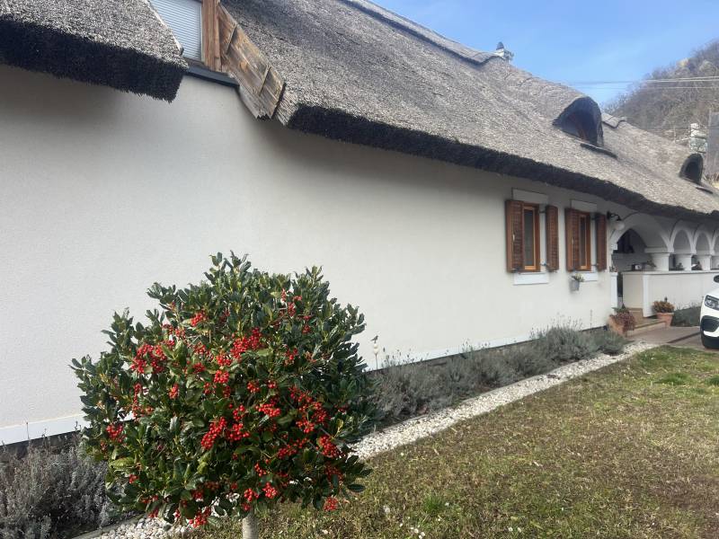 Eladó Szigligeten egy újszerű parasztház!Szigligeten a balatoni települések egyik gyöngyszemében, eladó egy páratlan adottságokkal rendelkező, 120nm-es, 3 szobás, igényesen felújított táj jellegű parasztház, rendezett, szép családi házas övezetben.A tulajdonos az ingatlant 2003-ban építette át, a hagyományok - és a Műemlékvédelem előírásait figyelembe véve.Az ingatlan a Várhoz vezető útnál helyezkedik el.Felújítása során a legmodernebb anyagok és technológiák kerültek felhasználásra, párosítva a német precizitással.A ház a autentikus Balatoni parasztházak jegyeit viseli magán, nádtető, tornácos terasz, fehér falak, fagerendás paraszt mennyezet.Az ingatlan felszereltsége azonban a leg modernebb gépekkel történt meg, Vaillant kazán, puffertartállyal kombinálva, ,Küppersbusch elszívó, beszerelt vízlágyító, Miele konyhai gépek, 1 m-es törhetetlen vízlepergetős üvegű zuhanykabin.Az udvarba távirányítós kapun keresztül juthatunk be, ahol egy Barabás téglakővel burkolt borospince is található.A ház belseje rendkívül impozáns a nagy belmagasságú nappalival, ahonnan a galériára juthatunk fel, itt az új tulajdonosnak van lehetősége további 80nm-en megvalósítani az elképzeléseit,csövezéssel felállt, szigetelt részen.Az ingatlan rendkívül kellemes környezetben helyezkedik el, kitűnő lehetőség állandó lakhatásra, nyaralóként de akár üzleti befektetésként is.Amennyiben felkeltette érdeklődését és további információra lenne szüksége vagy szeretné megtekinteni az ingatlant kérem keressen bizalommal.Irodánk Ön számára biztosított kedvezményes szolgáltatásai:- bankfüggetlen hiteltanácsadás- ha ügyfelünk lesz az ingatlan vevője, ingyen elkészíttetjük az energetikai tanúsítványt Ügyvédi szolgáltatások féláron elérhetők! |