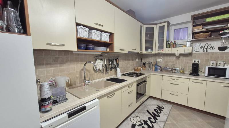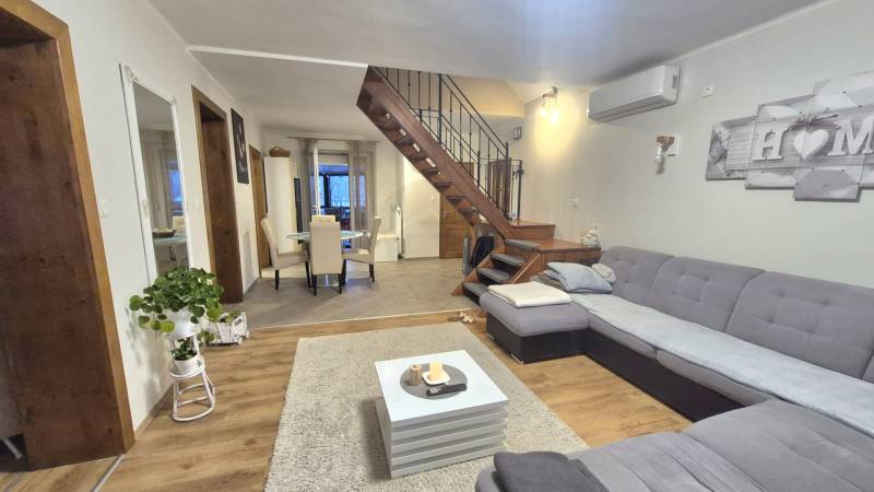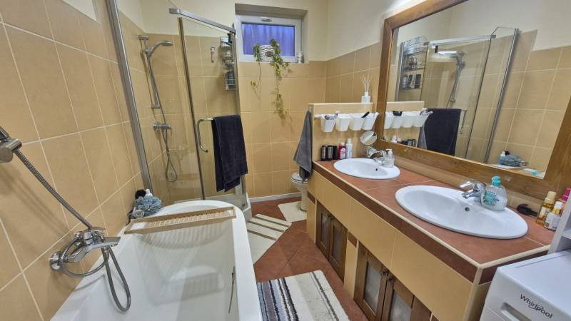 Baja-Szentistván egyik kedvelt, nyugodt utcájában kínáljuk megvételre ezt a 260 nm-es, háromszintes, újszerű állapotú, 1990-ben épült családi házat, amely egy 608 nm-es, gondosan parkosított telken helyezkedik el. Az ingatlan minden részletében a minőséget, az átgondolt tervezést és a kényelmet képviseli.A szuterén szinten egy önálló szoba–konyhás lakrész található fürdőszobával, amely tökéletes vendéglakásnak, otthoni irodának.A következő szinten egy tágas, napfényben úszó amerikai konyhás nappali fogad, amely ideális helyszíne a családi együttléteknek és elegáns vendégfogadásnak, továbbá egy külön szoba is kialakításra került. Innen tudunk kimenni a 20 nm-es téli kertbe, mely csodálatos panorámát nyújt a parkosított, medencés udvarra.A beépített tetőtérben két kényelmes hálószoba és egy praktikus gardrób található. amely ideális lehet vendégeknek, nagyobb gyermeknek vagy akár többgenerációs együttéléshezA maximális komfortot szolgálja, hogy mindhárom szinten külön fürdőszoba és WC áll rendelkezésre.A ház fűtéséről és melegvíz ellátásáról egy kondenzációs gázkazán gondoskodik, továbbá a rezsiköltségek csökkentését 6 kW-os napelemrendszer segíti. Az épület 10 cm-es hungarocell szigeteléssel, műanyag nyílászárókkal, valamint klímaberendezésekkel felszerelt, melyek gondoskodnak az energiatakarékos és kényelmes mindennapokról.A belső terekben greslap és laminált burkolatok kerültek kialakításra, harmonikus, időtálló stílusban.A körben napozott udvar valódi oázis: igényesen parkosított kert, medence, kültéri tároló és garázs teszi teljessé ezt a prémium otthont.Ez az ingatlan nem csupán egy ház – életstílus, ahol a nyugalom, az elegancia és a funkcionalitás tökéletes egyensúlyban van.Irányár: 118.000.000 Ft |