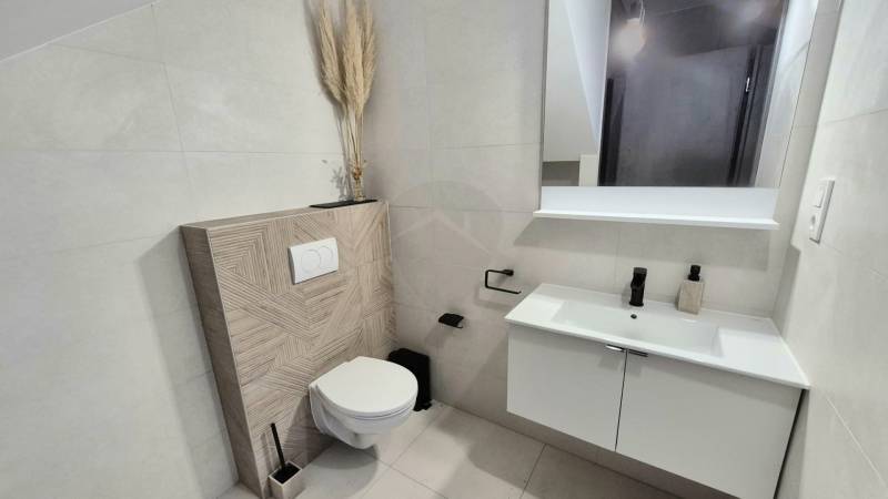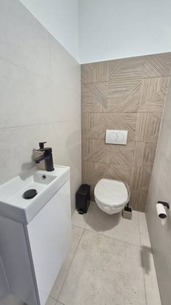 Baja csendes, nyugodt részén kínálunk megvételre egy 2024-ben épült, modern kialakítású, még nem lakott, kétszintes, téglaépítésű családi házat. A 145 m²-es lakótér egy 250 m²-es, parkosított telken helyezkedik el, ahol az öntözőrendszerrel gondozott udvar és a 12 m²-es terasz kellemes, nyugodt életteret biztosít a mindennapokhoz. A ház egész nap napfényes, világos belső tereit átgondolt kialakítás és modern megjelenés jellemzi.A földszinten a tágas, egybenyitott konyha–nappali–étkező a családi élet központja, amelyhez egy külön szoba, kamra és fürdőszoba kapcsolódik, valamint közvetlen átjárás nyílik a garázsból a lakótérbe. Az emeleten három hálószoba, gardrób, tároló és egy további fürdőszoba kapott helyet, így a ház ideális nagyobb család számára is. A szobák laminált burkolatot kaptak, a komfortérzetet hőszivattyús fűtés, klímák és kedvező H tarifa biztosítjanyilászárok 3 rétegűek.Az elektromos garázskapu, a biztonsági bejárati ajtó és a kaputelefon a mindennapi kényelmet és biztonságot erősítik. A modern műszaki tartalom és a nyugodt környezet elegáns, korszerű otthont kínál azoknak, akik új építésű, minőségi ingatlant keresnek Baján.Legyen Ön ennek az ingatlannak az első lakója!Irányár: 98.600.000 Ft |
