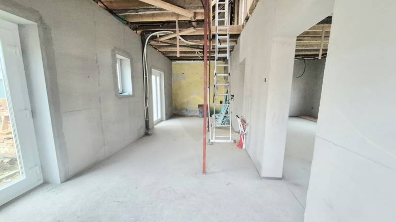 Baján, a Homokváros csendes részén kínálunk megvételre egy 375 m²-es, telken álló, kelet–nyugati fekvésű, 120 m²-es, ikerház jellegű családi otthont. Az ingatlan jelenleg felújítás alatt van, melynek a készültségi állapota mintegy 70%-os, így különleges lehetőséget nyújt arra, hogy új tulajdonosa saját stílusára és igényeire szabva fejezze be, miközben a legköltségesebb és legidőigényesebb munkák már elkészültek.A ház új Bramac cserepezésű tetőt kapott, a teljes víz-, villany- és szennyvízhálózat korszerűen kiépítésre került, új, 3×25A teljesítményű villanyórával. A padlófűtés csövezése már a szerelőbetonban található, a háromrétegű műanyag nyílászárók és a biztonsági bejárati ajtó pedig gondoskodnak a komfort és az energiahatékonyság alapjairól. A kémény elkészült, így a fűtési rendszer szabadon megválasztható.A földszinten egy tágas nappali–konyha tér, hálószoba és fürdőszoba kerülhet kialakításra, míg a tetőtérben további szoba és fürdő kaphat helyet. A hátsó melléképület pedig számos lehetőséget rejt: kialakítható belőle külön garzon, vendégház, műhely, iroda, edző- vagy wellnessrészleg, de akár kiadásra alkalmas apartman is.Az udvarban a garázs alapja már elkészült, így a parkolás fedett formában is könnyen megvalósítható. A nyugodt környezet, a praktikus elrendezés és a befejezés szabadsága együtt egy olyan ingatlant kínál, amely egyszerre jelent biztos értéket és személyre szabható otthont.Irányár: 59.000.000 Ft |