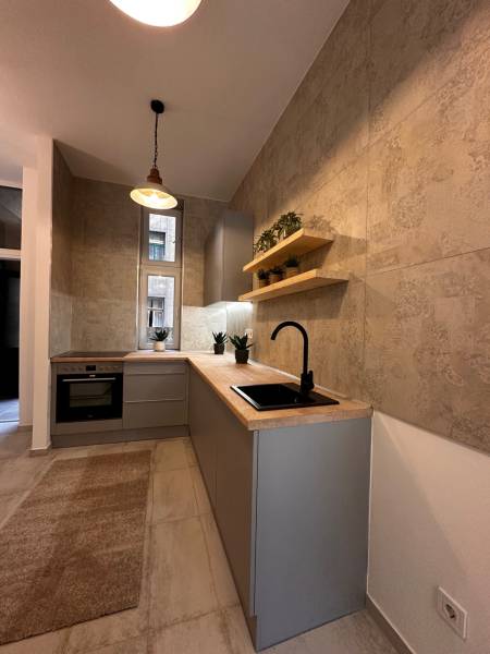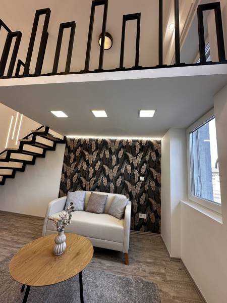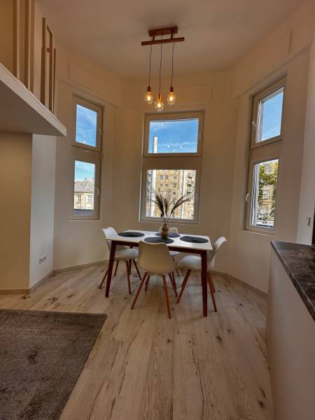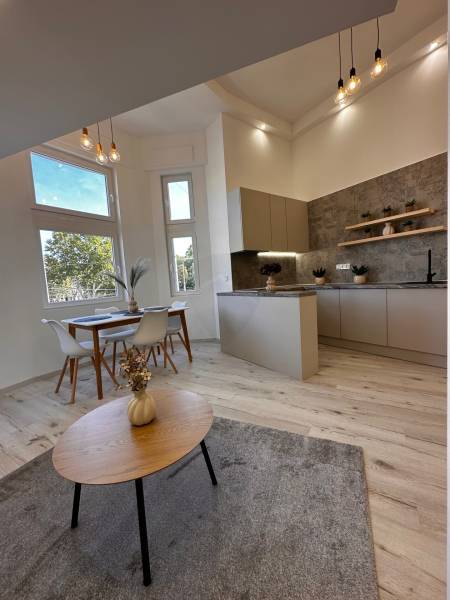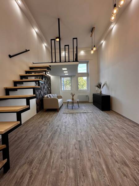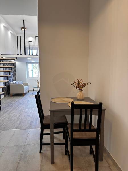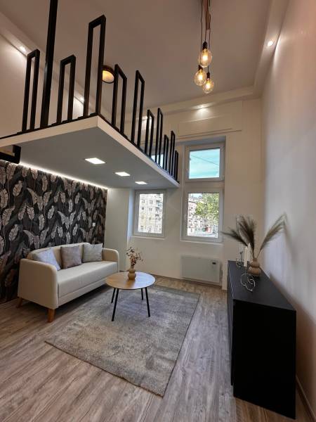 Megvételre kínálunk egy 35 nm-es, galériás lakást a IX. kerület Mester utcában. A lakáshoz tartozik egy 5 nm-es galéria, amely ideális hálórésznek vagy dolgozósaroknak. A lakás teljesen különálló bejárattal rendelkezik, így maximális privát szférát biztosít lakói számára.- Az ingatlan ügyvédi használati megosztással vásárolható meg.-A 3,8 méteres belmagasság tágas érzetet ad, a körbe ablakos kialakításnak köszönhetően pedig világos, barátságos tér várja új tulajdonosát.A lakás tehermentes, így rugalmasan birtokba vehető.Műszaki és egyéb jellemzők:- Közös költség: 18.800 Ft, mely a felújítási alapot is tartalmazza.- Világos, száraz lakás, a konyhában és a fürdőben is van ablak.- Modern, beépített konyhabútor, komplett berendezés (kanapé, étkezőasztal, franciaágy).- Teljes gépesítés: Ariston Wellis Evo bojler, hűtő-fűtő klíma, norvég panel.- Egyedi elektromos mérőóra rendszer: a 2. számú lakás rendelkezik fő villanyórával, a többiben digitális almérők vannak, de a vezetékelés lehetővé teszi a főmérőre való egyszerű átkapcsolást.Közös képviselet és ház állapota:- A társasház részben már felújított, kívülről újszerű állapotú.- Lift és belső kert szolgálja a lakók kényelmét.- Rendes, segítőkész lakóközösség.- A pince, a közös villany-, víz-, gáz-hálózat, valamint a kuka tároló is felújításra került.- A környék rehabilitáció alatt áll, ami hosszú távon pozitív értéknövekedést jelent. |