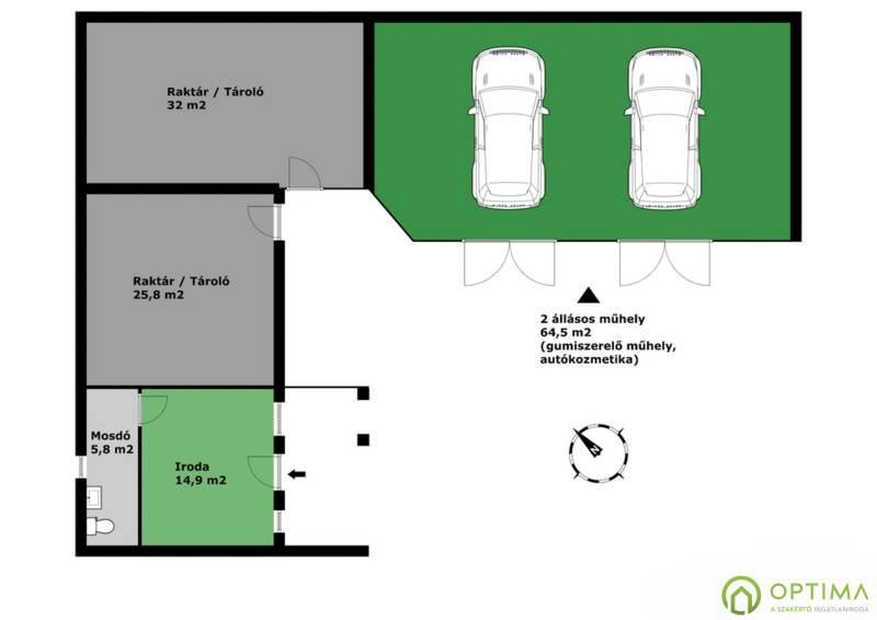 GUMIS MŰHELY GYÁL KÖZPONTJÁBANGyál központi részén, főút mellett kínálom megvételre ezt a nettó 143 m2 alapterületű gumis műhelyet. A gumis műhely TELJES BERENDEZÉSSEL ÉS A TEVÉKENYSÉG VÉGZÉSÉHEZ SZÜKSÉGES GÉPEKKEL, ESZKÖZÖKKEL EGYÜTT ELADÓ. A GÉPEK ÉS ESZKÖZÖK A VÉTELÁR RÉSZÉT KÉPEZIK.A műhely egy 437 m2 alapterületű telken található, ahol kényelmes parkolóhelyek alakíthatók ki az ügyfelek, illetve a várakozó járművek részére.Az ingatlan kb. 65 m2 alapterületű műhelyében jelenleg 2 állásos munkaállomás áll rendelkezésre, így egyidőben 2 gépjármű gumizható.A műhelyzet tartozik továbbá közel 60 m2 alapterületű tárolóhelyiség, amely jelenleg 2 részből áll. Ezek a helyiségek kiválóan alkalmasak gumihotel működtetésére.Továbbá egy közel 20 m2 alapterületű kiszolgálóhelyiség áll rendelkezésre, ahol jelenleg iroda, valamint vizesblokk található.További részletekért és az ingatlan személyes megtekintésével kapcsolatban VÁROM HÍVÁSÁT akár hétvégén vagy az esti órákban egyaránt! |