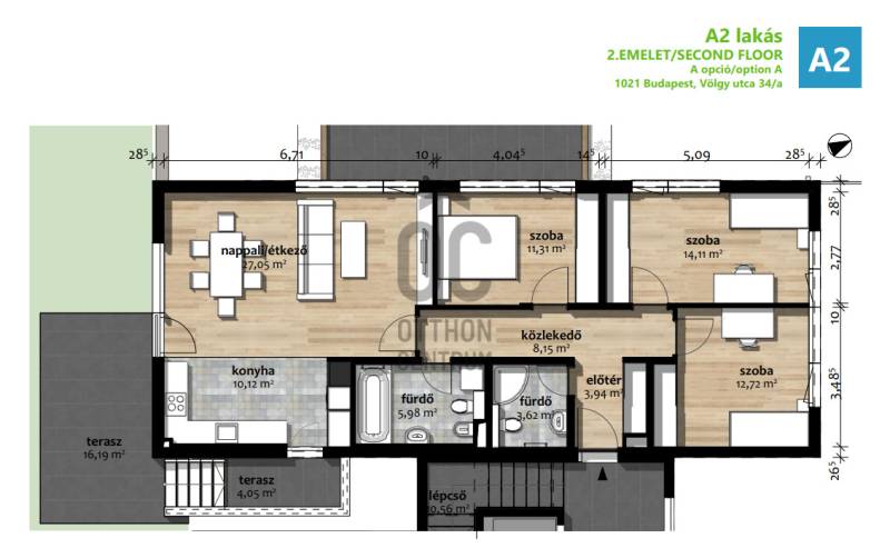 KÉPZELD EL…..Képzeld el álmaid otthonát, azt a lakást, amiben nincs kompromisszum, minden a kényelmedet és kikapcsolódásodat szolgálja. A helyet, ahová élmény megérkezni, ahol csend, nyugalom zöldellő növények között olyan épület áll, amely eleganciát, harmóniát és biztonságot sugároz. Ez az új otthonod, ma még project, mégis több mint ígéret, több, mert építése elkezdődött! VÖLGY GARDEN….A HELY: Hűvösvölgy egyik legkedveltebb utcája, korlátozott autós forgalommal, a villamos pályatest modernizálták, a megállókat felújították. 2150 m2-es telken két épületben, öt lakás eladó,( kettő már gazdára talált ) 3 – 4 – 5 szobás lakás változatok. Saját kertrész /338 m2/ saját garázs 19m2, vásárlási opcióval 12millió ft/db saját tároló, 5-8 m2-es vásárlási opcióval 1,3millióFt/m2SZERKEZETI TECHNOLÓGIA: C.L.T CROSS LAMINATED TIMBER Nagy szilárdságú, hossz és keresztirányban rétegenként ragasztott lucfenyő panelekből készítik a falakat,födémeket és a tetőt. Az építés során gondosan ügyelnek arra, hogy fenntartható forrásból származó és magas minőségű építőanyagokat használva, alacsony karbon lábnyomot hagyjanak, minimális hulladék képződés illetve víz felhasználása mellett precízen gyors ütemben építi fel a lakóépületet. A fa az emberiség egyik legrégibb építőanyaga, az építészet fejlődésével új és újabb technológiák születtek változó költség, élettartam és minőségben. Ausztriában már a 90-es évek óta használják, a Távol-Keleten is népszerű építési módszer: földrengés, tűz és viharbiztos. MŰSZAKI LEÍRÁS: Födém-tetőszerkezet - kiváló hő-hangszigetelt földrengés-tűz (DS\'1) - viharbiztos időjárási viszonyoknak nem kitett duzzadás és penész mentesek garantált, magas élettartam Épület párakezelés /allergén/vírus védelem /gépi szellőztetéssel/ alacsony épület üzemeltetési költségek Épület automatika OKOS OTTHON Szigetelés 25 cm Szerkezetkész állapot : 2024. novemberFűtés Hőszivattyú hűtés-fűtés, padlófűtés konyhában és a fürdőkben elektromos padló temperálásENERGETIKAI tanúsítvány: „B”A KÖRNYÉK: Hármashatárhegy és a Jánoshegy séta távolságra A Völgy utcában limitált a gépjármű forgalom A készülő épület kerékpárral is megközelíthető. A mikro-makro környezet intézményi -vásárlási-ügyintézési szempontból is maximálisan ellátott. A beruházó cég: 30 éve foglalkozik ingatlanfejlesztéssel és értékesítéssel. Kivitelezési épületeik között az exkluzív villától, a kis lakás számú társasház, több száz lakásos lakópark megtalálható.A2 LAKÁS: „A opció” Nappali + 3 szoba II.emelet. alapterület: 97 m2 komfort: dupla komfort tájolás: D Terasz: 20,24 m2 Saját kertrész: 338 m2 |