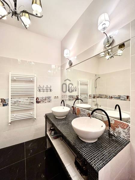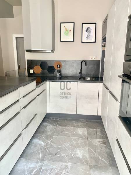 Az I. és II. kerület határán, a Batthyány tér és a Széll Kálmán tér között kínálunk eladásra egy 156 m²-es, átgondolt elrendezésű, teraszos, városi panorámás lakást modern épületben!A lakás leírásaEz a kifinomult, 5 szobás otthon egy gondosan karbantartott, liftes társasház teljes 5. emeletét foglalja el.-A belső terek elegáns stílusa és a praktikus megoldások tökéletes harmóniát alkotnak – minden készen áll a kényelmes mindennapokra.-A tágas nappali modern, beépített konyhával és étkezőrésszel ideális helyszín családi vacsorákhoz vagy baráti összejövetelekhez.-Három külön bejáratú hálószoba biztosítja a maximális privát szférát.-Egy dolgozószoba / vendégszoba tökéletes otthoni munkához.-Két teljes értékű fürdőszoba káddal, zuhannyal és dupla mosdóval, valamint egy külön vendég-WC növeli a kényelmet.-Egy gardróbszoba és külön mosókonyha segíti a rendezettséget és praktikusságot.-Az ablakokból lenyűgöző panoráma nyílik a városra és Buda zöld dombjaira.Rugalmas alaprajz és befektetési lehetőségA tulajdoni lap szerint az ingatlan három különálló lakásból áll (91 m², 46 m² és 19 m²), mindegyik önálló helyrajzi számon.Ez számos lehetőséget kínál:az eredeti három lakás visszaállítása,két nagyobb lakás kialakítása,vagy a jelenlegi, egybenyitott luxus családi rezidencia megtartása.Négy különböző alaprajz-változat áll rendelkezésre, amelyek bemutatják a lehetséges elrendezéseket.Ideális választás befektetőknek és kényelmet, rugalmasságot kedvelő családoknak egyaránt.Saját garázs a VízivárosbanA ház pince szintjén található egy 27 m²-es helyiség utcai bejárattal.A helyiség „műhely” megnevezésű, közművesített (villany, víz, gáz), jelenleg garázsként funkcionál, de műhelyként vagy tárolóként is használható.A környékről – VízivárosVíziváros Buda egyik legszebb és legpatinásabb negyede, a Duna partján, a Várhegy lábánál.Történelem és modern életérzés tökéletes harmóniában: régi homlokzatok, elegáns éttermek és zöld belső udvarok.Néhány perc sétára található:-Széchenyi Lánchíd,-Királyi Palota és a Várhegyi Sikló,-híres Király fürdő,-hangulatos kávézók és borbárok a Fő utcán,-valamint a Duna-part, tökéletes hely esti sétákhoz és naplementékhez.A környék híres nyugalmáról, biztonságáról és magas életminőségéről.A nemrég felújított járdák, ápolt homlokzatok és zöldterületek különleges hangulatot adnak a Csalogány utcának.Minden elérhető gyalogosan: Lidl (30 méterre), Mammut bevásárlóközpont, iskolák, óvodák, villamos-, metró- és buszmegállók.Víziváros nem csupán egy lokáció – ez egy életstílus: Duna-parti séták, reggeli kávé a közeli kávézókban, csend és panoráma az óvárosra.Presztízse és fejlett infrastruktúrája miatt a városrész az egyik legkeresettebb lakó- és befektetési célpont Budapesten.Miért érdemes ezt a lakást választani-Csendes, de központi elhelyezkedés-Prémium minőségű kivitelezés, átgondolt alaprajz (gardrób, vendég-WC, mosókonyha)-Erkély, lift, panoráma, garázs – ritka kombináció-Rugalmas tulajdonstruktúra – ideális lakhatásra és befektetésre is-Presztízsértékű, történelmi Víziváros, magas szintű infrastruktúrávalNe hagyja ki ezt az egyedülálló lehetőséget!Hívjon minket további információért és időpont egyeztetésért – az ilyen ingatlanok ritkán kerülnek piacra. |