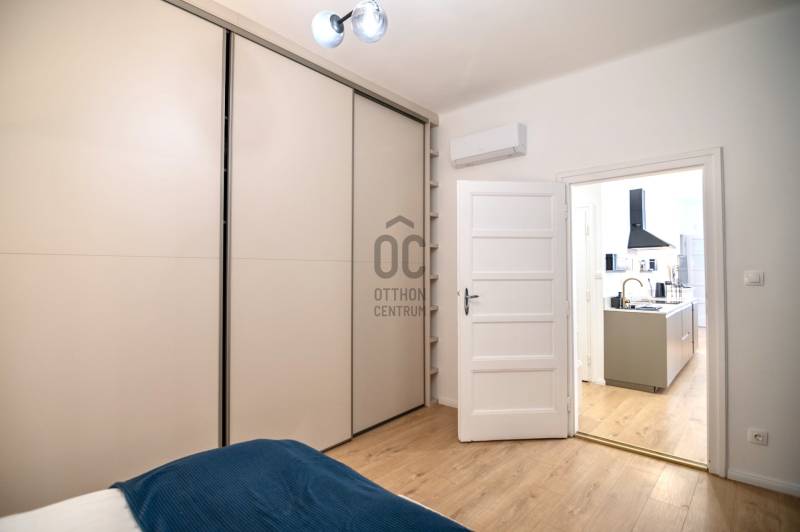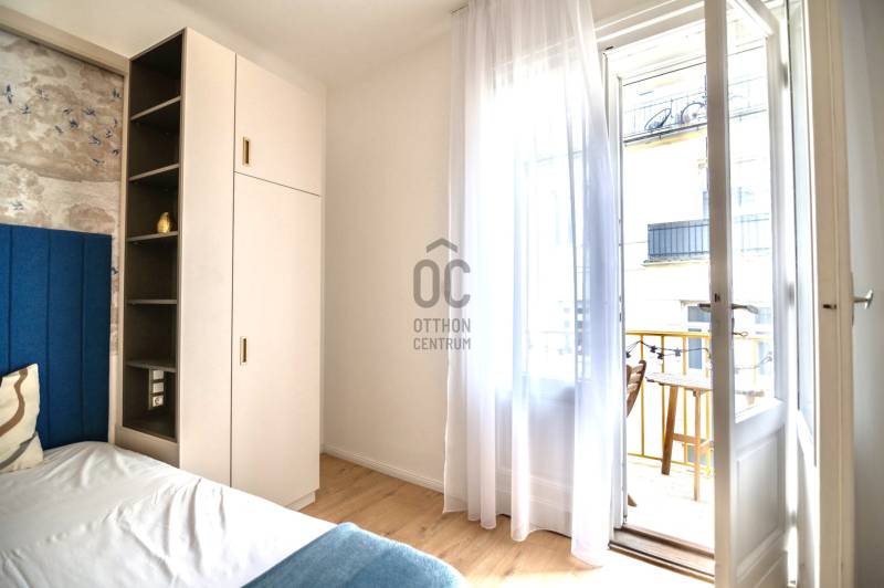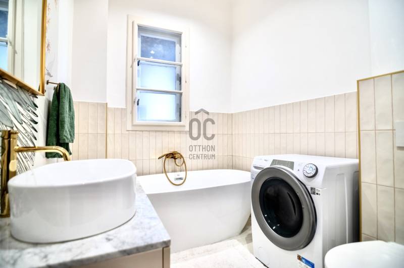 Budapest belvárosában, az V. kerületben, a sétáló Váci utca közvetlen közelében, a Nyáry Pál utca csendes és elegáns szakaszán eladó egy egyedülálló, teljes körűen felújított, 89 m²-es, erkélyes lakás.Központi elhelyezkedése ellenére az utca ezen része gyalogos, rendkívül nyugodt, így a lakás ritka kombinációját nyújtja a városi életnek és a meghitt nyugalomnak.Építészeti értékkel rendelkező házAz épület 1933-ban épült, tervezője Györgyi Dénes, a kivitelezést Sorg Antal vezette – koruk meghatározó alakjai.A ház építészete a modernizmus és a klasszikus elemek kifinomult ötvözete. A homlokzat különlegessége az elliptikus, homorú francia udvar, amely egyedi karaktert és rangot ad az épületnek.Az épület kívül-belül kiváló állapotban van, modern panorámalifttel, rendezett, reprezentatív lépcsőházzal és nyugodt, intelligens lakóközösséggel rendelkezik.Fény, tér és lenyűgöző kilátásA lakás a 4. emeleten található, ennek köszönhetően rendkívül világos.Az utcai 2 m²-es erkélyről ritka és lenyűgöző panoráma nyílik a Gellért-hegyre és a Szabadság-szoborra – olyan kilátás, amely egész évben értékálló és soha nem beépíthető.Elrendezés és felszereltségTulajdoni lapon szereplő alapterület: 89 m² + erkélyEgy légtérben kialakított nappali–étkező–konyhaKét különnyíló, tágas hálószobaKét fürdőszobaBeépített infravörös szaunaUtcára néző ablakokNappaliban és hálószobákban modern hőszivattyúk (hűtés–fűtés)Fűtés: házközpontiKözös költség: kb. 55 000 Ft, amely tartalmazza a fűtést és a vízfogyasztástMeleg vizet két energiatakarékos bojler biztosítjaMinőség, stílus és kényelemTeljesen megújított elektromos és vízvezeték-hálózatEredeti fa nyílászárók korszerű hőszigetelésselA lakás teljes bútorzattal és gépesítve kerül eladásraEgyedileg gyártott bútorok, prémium kész megoldásokMagas minőségű burkolatok, Carrara márvány munkapultokA nappaliban bioetanol kandalló a meghitt hangulatértElektromos redőnyökRiasztórendszerElhelyezkedés, ami önmagáért beszél5 perc sétára a Duna-partKözel a Fővám tér és a NagyvásárcsarnokFerenciek tere és Kálvin tér metróállomások 5 percen belülA szomszéd utcában bérelhető mélygarázsKávézók, éttermek, üzletek, kulturális és történelmi látnivalók a közvetlen közelbenElit, biztonságos és presztízs értékű környék, ideális saját célra és prémium befektetésnek isAzonnal költözhetőA lakás tehermentes és azonnal birtokba vehető – tökéletes választás azok számára, akik a minőséget, az építészeti értéket, a panorámát és a kifogástalan lokációt keresik.Szívesen válaszolok kérdésekre és megszervezem a megtekintést. |