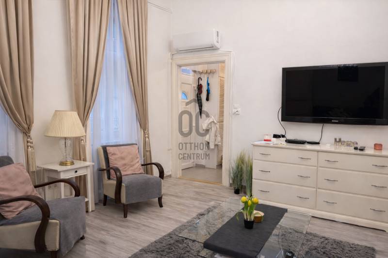 Kiadó igényes, tágas lakás az Oktogonnál!Budapest egyik legkedveltebb városrészében, az Oktogonnál kiadó egy világos, nagy terekkel rendelkező, teljesen bútorozott lakás. Az ingatlan egy felújított lépcsőházzal rendelkező társasház 3. emeletén található, rendezett, kultúrált lakóközösségben.A lakás azonnal költözhető, valóban csak egy bőrönd szükséges a beköltözéshez. Klímaberendezéssel felszerelt, csendes otthon, ahol a város zaja nem hallatszik be, ugyanakkor minden szolgáltatás karnyújtásnyira elérhető. A gang felől biztonsági rács védi az ingatlant, amely egy elkülönített, erkélyszerű rész használatát is lehetővé teszi.A tulajdonosok rugalmasak, 12 hónapnál rövidebb bérleti időszak is lehetséges.Kisállat, illetve nagyon kisgyermekkel történő költözés sajnos nem preferáltA közös költség 18.000 Ft/hó.A közlekedés kiváló: 1 perc sétára található a 4–6-os villamos, az M1-es metró, valamint több buszjárat, a közelben számos bevásárlási lehetőséggel.Ha egy igényes, azonnal költözhető belvárosi lakást keres, vegye fel velem a kapcsolatot, és tekintse meg személyesen ezt a kiváló adottságú ingatlant. |