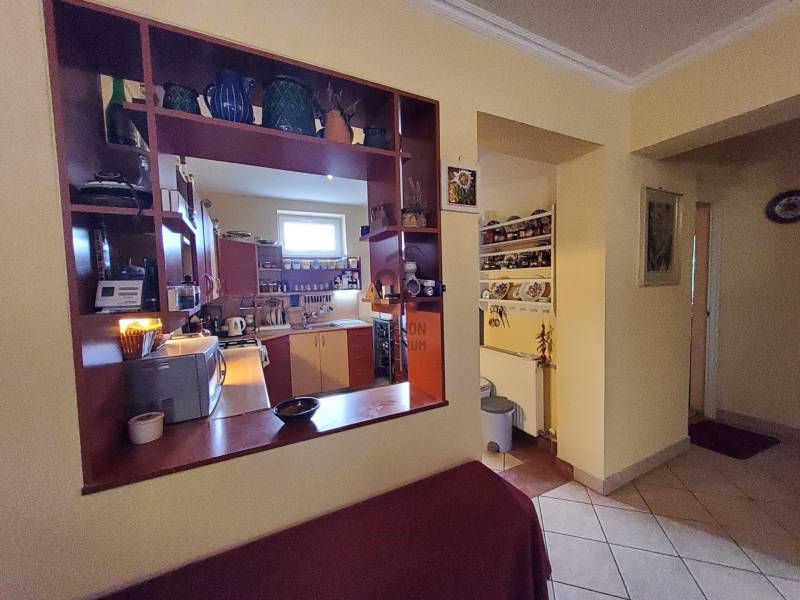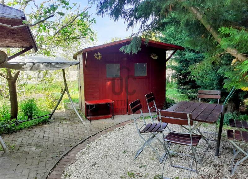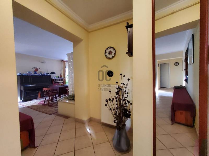 Gárdonyban, festők utcáiban, kertvárosi környezetben eladó egy KÉT GENERÁCIÓS, 5 szobás, FEDETT TERASZOS, 150 m2-es családi ház, GARÁZZSAL, KERTI KIÜLŐVEL, dús növényekkel teli kertben.A két lakóegység kialakítását egymást nem zavaró bejárással oldották meg. A kisebb lakrész 27,8 m2, áll egy konyha-étkező-nappaliból, zuhanyzós fürdőszoba -WC-ből és egy hálószobából. Déli fekvése, világos, napos helységei vidámságot tükröznek.A nagyobb lakórész nem csak a főbejáraton, hanem a garázsból is közvetlen bejárható. Kamrából a közlekedőbe és már a nappali étkezőben is vagyunk. Itt elszeparálva de egy légtérben van együtt a konyhával. Tágas ajtók nyílnak a fedett erkélyre és két különálló hálószobára. Egy fürdőszoba, egy külön WC, egy kazánház, modern infra szauna nyílik a közlekedőből.Kertben egy fedett kiülőn kívül van még egy pergola tetejű is és a kert hátsó részén két faház tárolás céljából.A ház 2004-ben épült, PTH 30-as téglából, 8 cm-es hőszigeteléssel, vasbeton födémmel és Bramac tetőcseréppel. Műanyag nyílászárókon redőny és szúnyogháló is használatban van.Fűtése 2 éves modern SAUNIER DUVAL kazánról, radiátoros hőleadással működik. A nappaliban igazi remekmű, egy gyönyörű cserépkályha is ad meleget téli bekuckózásokhoz.A sok gondoskodással művelt kert fúrt kútról van öntözve. Rengeteg dísznövény és gyümölcsfa található. Magas ágyásokban konyhakerti növények zöldellnek.Közelben elérhető óvoda, iskola és a termál fürdő is. Kertvárosi csendes környezete tökéletes a home Office-ra, vagy akár kerti partikra is.Az M7 autópályáról az ingatlan 12 perc alatt megközelíthető, Aldi 12 perce Vasútállomás 20 percre van gyalogosan.Hívjon, nézzük meg együtt amíg még megvan!Irodai azonosító : H483729 |