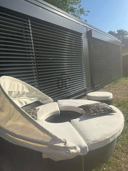 Eladó konténerház!A telek nem eladó csak az elszállítható konténerház(mobilház) !Egészítse ki álmai otthonát ezzel a lenyűgöző acél váz házzal! Az acél konténer ház teljesen méretre leszabott és szinterezett, hogy maximális funkcionalitást és minőséget biztosítson. Az 2 darab, összesen 30 négyzetméteres konténer, antracit szürke szendvics panelekből készült, melyek 150 mm vastag PIR szigeteléssel rendelkeznek. Az alsó szigetelés is 150 mm vastag, hogy az egész évben komfortos legyen a lakhatás. A ház tetőfedése bádog lemezzel történt.Minimál stílusú konyha a szíve vágya? Itt megtalálja. Rehau tapadásmentes fogantyús konyhabútorral és rose gold üveg betétekkel rendelkező konyhával.A kényelmet sem hagyjuk figyelmen kívül: 2 darab 2.3 x5 .8 méretű ablak elektromos zsaluziával és távirányítóval, LED zuhanyfej mozgásérzékelő lámpákkal, valamint mozgásérzékelő tükrökkel a fürdőszobában találhatóak. Fekete csempe, fekete szaniterek és fekete tapéta teszi fel az i-re a pontot! A konyhában minden megtalálható, hogy a főzés élményét teljessé tegyük: vízmelegítő, mosogató, mosogatógép, csaptelepek, mikrohullámú sütő és sütő is a kínálatunkban szerepelnek. A konyhában található rose gold üveg lap betétek pedig csak tovább emelik az exkluzivitást. A komfortérzet és az ideális hőmérséklet érdekében pedig GREE klíma is a ház része. A nappalit pedig prémium minőségű sarok ülőgarnitúra teszi hangulatossá. Az belső és külső világítás kiváló minőségű.Ha megszerette ezt a gyönyörű konténerházat, a szállítás már az Ön feladata.. De nyugodtan számíthat ránk, ha fuvarozó segítségre van szüksége.Ha nem felel meg ez a konténerház, az eladó vállal hasonló kivitelezésű mobilház legyártását, kivitelezését is. Ne maradj le erről az egyedi, exkluzív konténerházról! Hívjon most, hogy megtudjon többet erről a lehetőségről!konténerház#, berendezve, prémium minőség#, |