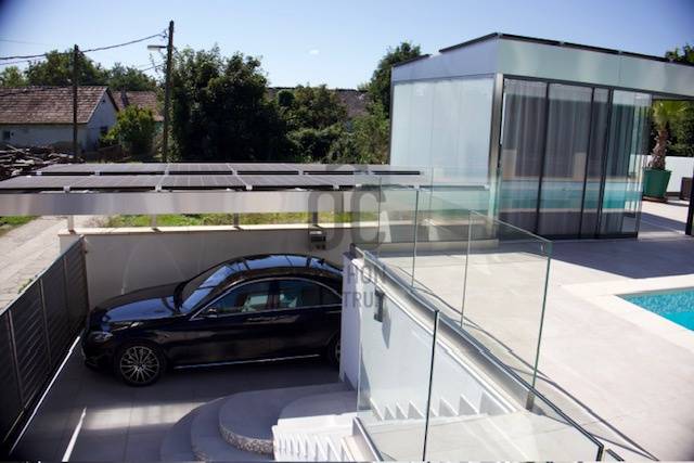 Passzív ház, Siófoktól 25 km-re, Iregszemcsén!Árcsökkenés!!!Az épület három szintes, az alsó szinten dupla garázs, finn szauna, konditerem, és a gépészet található. A földszinten egy teljesen új konyha, AEG gépekkel és gránit lapokkal felszerelve. Itt található egy fürdőszoba, különálló wc-vel és egy hálószoba.Az emelthez üveg lépcső vezet fel egy függönyfalon keresztül láthatóvá válik a teljes telek.A legfelső szinten kandallóval díszített kis konyha egy zenehallgató sarok és egy gardrób szekrény található. Ebben a térben egy nagyméretű fürdőszoba, wc szolgálja ki a tulajdonosát. Itt kapott helyet még egy hálószoba, amely nincs leválasztva, de elszeparálva lehet pihenni.A házat levegő-víz hőszivattyú és napkollektorok teszi energiahatékonnyá. Ezt a rendszert szolgálja ki a kapubejáróra és télikertre telepített napelemes rendszer.Az ideális hőmérsékletről a pinceszinten egy hővisszanyerős légcserélő, a földszinten padlófűtés - hűtés, az emeleten mennyezet hűtés-fűtés gondoskodik.A teljes telek 95 %-a le van burkolva, ebből csak a fűtött, automata öntözővel felszerelt pálmakert maradt ki.A kertben rozsdamentes télikert, rozsdamentes autóbeálló és kapu teszi gondozásmentessé az életet.Itt található a fűthető, változó mélységű medence, amelynek gépészete az alsó szinten van. A medencét napkollektorok fűtik, természetesen a hőszivattyú segítségét is igénybe lehet venni. A medence sóbontóval és UV fertőtlenítővel van ellátva, semmilyen vegyszert nem kell használni hozzá.A teraszon a sós vizes 6 személyes jacuzzi is a ház része.A házban nagyon sok telefonról vezérelhető, kontrollálható eszköz van, segítve az egyszerű, bárhonnan történő irányítást.További részletekért hívjon most! |