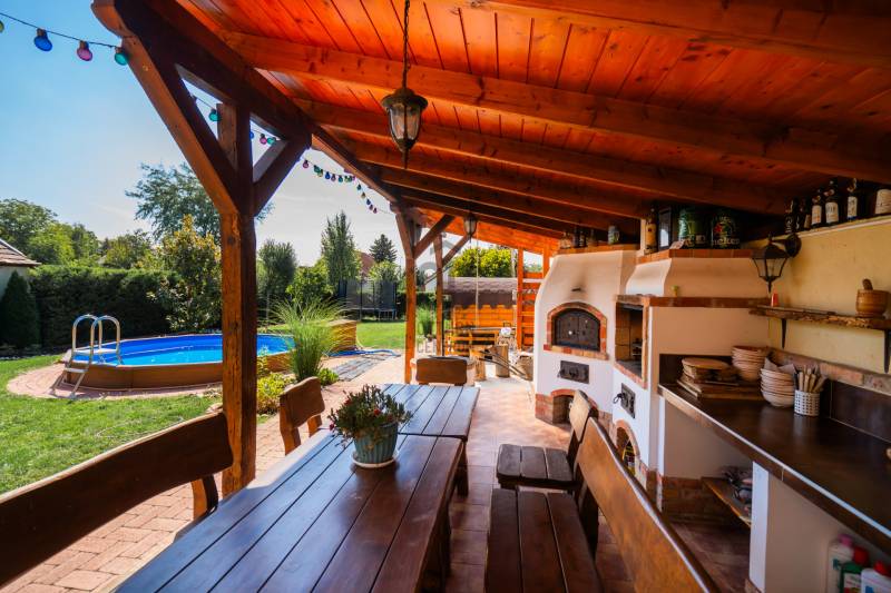 Ha a Balaton közelsége a vágyad, de szeretnél nyugodt, családias környezetben élni, megtaláltad az ideális otthont!Ez a mindössze 7 éves, különleges hangulatú ház egyszerre kínálja a nyári nyüzsgés és a vidéki nyugalom tökéletes egyensúlyát. Az ingatlan főbb jellemzői:Telek: 780 m², gondosan parkosított kert dísznövényekkel, gyümölcsfákkal és két impozáns pálmávalHáz: 177 m² + 40 m² terasz + 30 m² pinceHatalmas, galériás nappali: 50 m², konyhával és étkezővel együtt kb. 80 m²Nagyméretű, gardróbos hálószobák2 fürdőszoba és 3 WC3 autónak fedett beálló + 4 autó számára saját parkoló Extrák, amik egyedivé teszik:- 30 m² fedett grillterasz konyhával, kemencével, bográcsozóval és külön WC-vel- 5 méter átmérőjű, 1 méter mély medence teljes gépészettel- Fatüzelésű szauna és dézsa – minden nap wellness hangulatban- Öntözőrendszer, kerti világítás- 8 kW-os napelemrendszer (évi ~6 MWh túltermelés, még 8 évig szaldós elszámolással)- Kamerarendszer és távfelügyeleti riasztó Elhelyezkedés:A Balaton aranypartja autóval 3 percFő tér, városközpont: mindössze 4 kmCsendes, zöld kertváros, parkokkal, játszótérrelEz a ház nem csupán egy ingatlan – hanem életstílus.Tágas terek, mediterrán hangulat, wellness élmény és a Balaton közelsége – minden adott ahhoz, hogy álmaid otthonává váljon. Ne hagyd ki ezt a ritka lehetőséget! Hívj most, és nézd meg személyesen ezt az egyedülálló házat!Balaton közelében, #családias,# mediterrán kert,# medence,# grill terasz,# szauna,# napelem, #családi ház# |