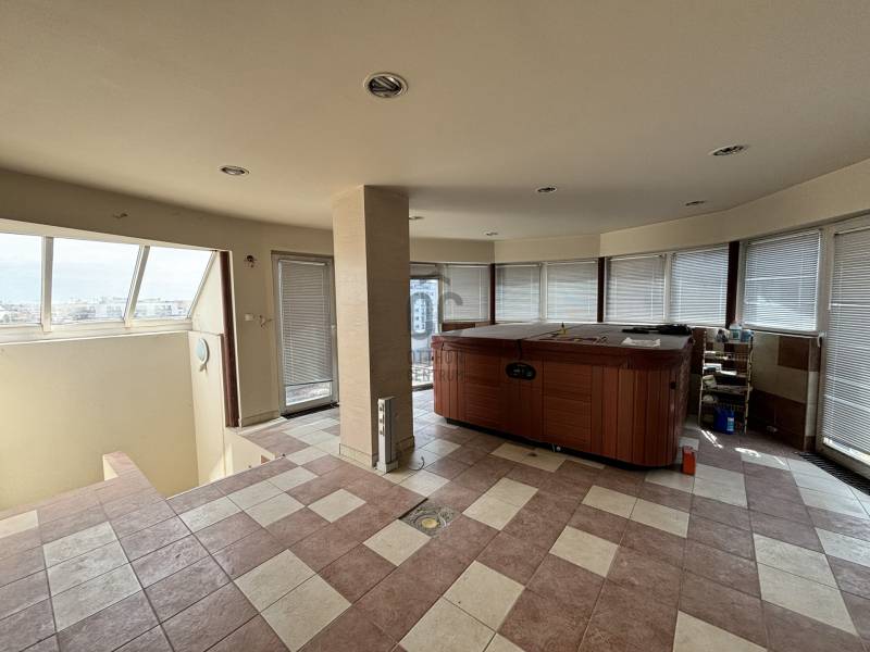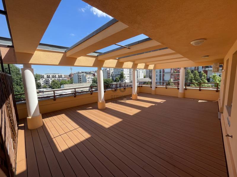 Angyalföld központi részén két szintes, panorámás, penthouse lakás eladó!2008-ban épült, jó lakóközösséggel rendelkező, szépen karbantartott házban eladó ez a kivételes lehetőségekkel bíró nappali + 3 hálószobás lakás.A lakásba a ház negyedik emeletén, zárt lépcsőházból van a bejárat ahol is a fogadó szinten előtér, WC, nappali, konyha, és egy 50nm nagyságú részben fedett, pazar panorámát biztosító terasz található. A teraszon mind víz mind áramvételezési lehetőség adott.Az emeleten, az elosztó előtérből juthatunk a három különnyíló szobába, a nagy fürdőszobába és a fürdő mellett található háztartási helyiségbe. Az emeleten lévő legnagyobb szobából nyílik a kijárat az itt lévő 8nm nagyságú erkélyre. A felső szinten lévő szobák elektromos redőnnyel rendelkeznek.A lakás különlegessége a társasház tetején lévő 48nm nagyságú helyiség mely óriás jacuzzival, nagy terasszal rendelkezik. Feljutás ide csak ebből és a szomszédos lakásból lehetséges!Fűtés: házközponti, fürdőszobában törülközőszárítós radiátor. emeletenként klímaberendezés található.A nappaliban (akár fa tüzelésű) kandalló kiépítése lehetséges, a szükséges kéményt a fal rejti.Igény esetén garázs vásárolható: 7,5M FTJöjjön, nézze meg ezt a különleges lakást! |