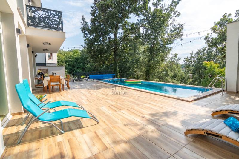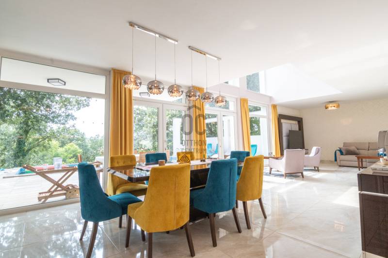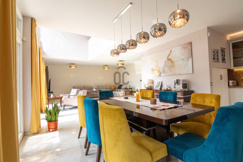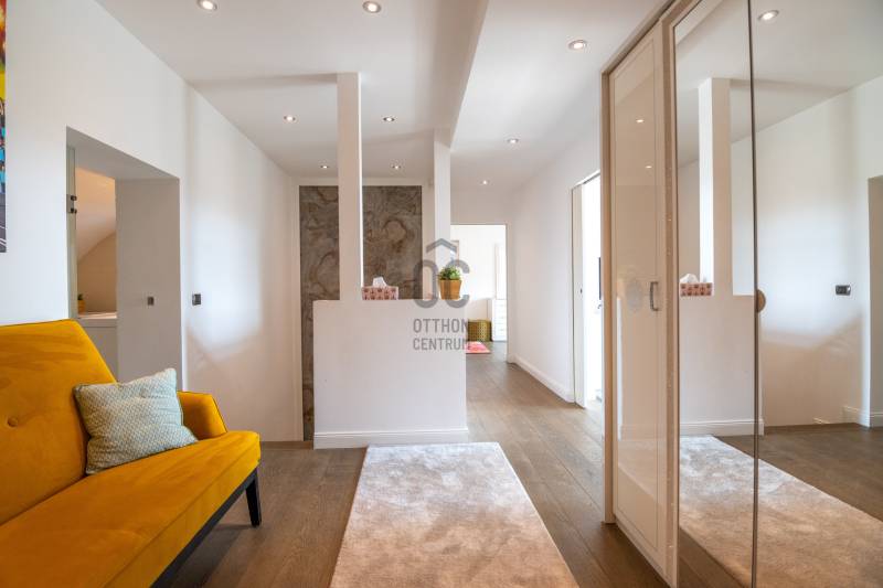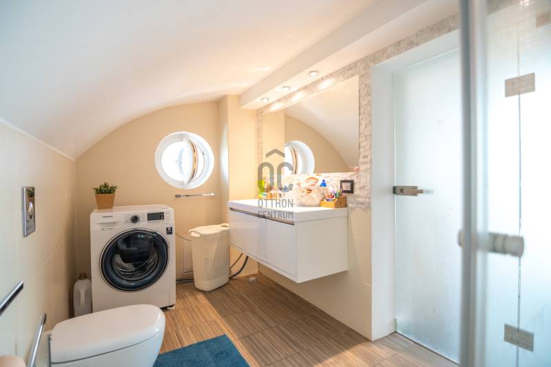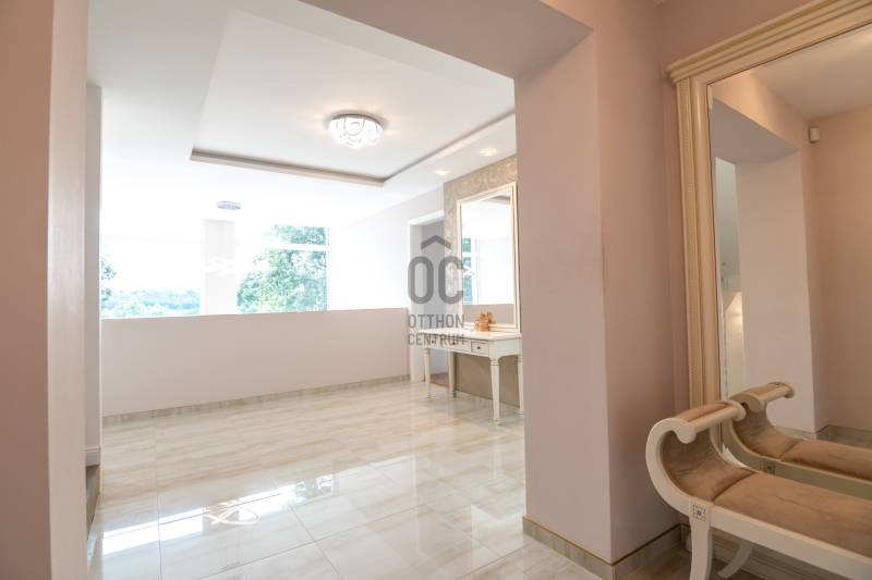 MIÉRT EZT VÁLASSZA?* Lélegzetelállító panoráma a környező tájra.* Hatalmas, 130 m²-es terasz- és erkélyegyüttes saját kültéri medencével.* Prémium minőségű, kompromisszumok nélküli építkezés.* Nagyvonalú terek: 220 m² nettó lakótér, kiváló elrendezéssel 4 szinten.* Ideális családoknak: Tágas közösségi terek és négy különnyíló hálószoba.* Zöldövezeti, presztízsértékű elhelyezkedés Diósdliget csendes részén.* 2 gépjármű számára kialakított beállási lehetőség a telken.* Praktikus tárolás és egyedi hangulat a saját borospincével.AZ INGATLANEz a Diósdligeten található, minden igényt kielégítő, 220 m² nettó (364 m² bruttó) lakóterületű családi ház a luxus és a kényelem tökéletes ötvözete. Az ingatlanhoz egy 300 m²-es, intim kert és egy összesen 130 m²-es terasz- és erkélyegyüttes tartozik, melynek központi eleme a saját medence.A ház négy szinten kínál átgondolt élettereket:* A földszint a társasági élet központja: itt található a 30 m²-es nappali, egy tágas, 30 m²-es konyha-étkező, valamint egy dolgozószoba. Innen nyílik a lenyűgöző, 126 m²-es panorámás terasz és a medencetér, amely tökéletes helyszíne családi és baráti összejöveteleknek.* Az első emeleten kapott helyet a főbejárat, egy tágas előszoba, valamint egy komplett szülői lakrész, mely saját hálószobából, gardróbból és fürdőszobából áll, teljes intimitást biztosítva.* A második emeleten további három, különnyíló hálószoba és egy fürdőszoba található, amely ideális a gyermekek vagy vendégek számára.* A szuterén szinten egy hangulatos borospince és a kazánház kapott helyet.A magas minőségű kivitelezés, a praktikus elrendezés és a páratlan panoráma teszi ezt az otthont igazán különlegessé.KÖRNYÉKDiósdliget a budapesti agglomeráció egyik legkeresettebb, legmagasabb presztízsű része. Csendes, biztonságos, zöldövezeti környezet jellemzi, kiváló levegővel. Az infrastruktúra fejlett, Budapest autóval és tömegközlekedéssel is könnyen és gyorsan elérhető. Ideális választás mindazoknak, akik a város közelségére és a természet nyugalmára egyaránt vágynak.MŰSZAKI ADATOK* Szerkezet: Magas minőségű építés, 15 cm-es külső hőszigeteléssel.* Nyílászárók: Modern, hőszigetelt műanyag ablakok és ajtók.* Fűtés: Gáz-cirkó, padlófűtéssel és radiátoros hőleadókkal kombinálva.* Hűtés: Kiépített klímarendszer.* Terasz és Erkély: Összesen 130 m².* Parkolás: 2 autó számára fedetlen gépkocsibeálló a telken belül.* Extrák: Kültéri medence, borospince.PARKOLÁS2 állásos fedetlen gépkocsi-beálló a saját telken belül.KIKNEK AJÁNLOTT?Tökéletes választás:* Nagyobb családoknak, akik tágas, jól szeparált, többgenerációs együttélésre is alkalmas élettereket keresnek.* Igényes vásárlóknak, akik egy reprezentatív, prémium minőségű és értékálló otthont szeretnének.* A szabadtéri élet kedvelőinek, akik kiélveznék a hatalmas, panorámás terasz és a saját medence nyújtotta lehetőségeket.Irányár: 279.000.000 Ft (kb. 711,000 EUR)Amennyiben az ingatlan felkeltette érdeklődését, keressen bizalommal, hogy további információkkal szolgálhassak és megszervezhessek egy személyes bemutatót. |