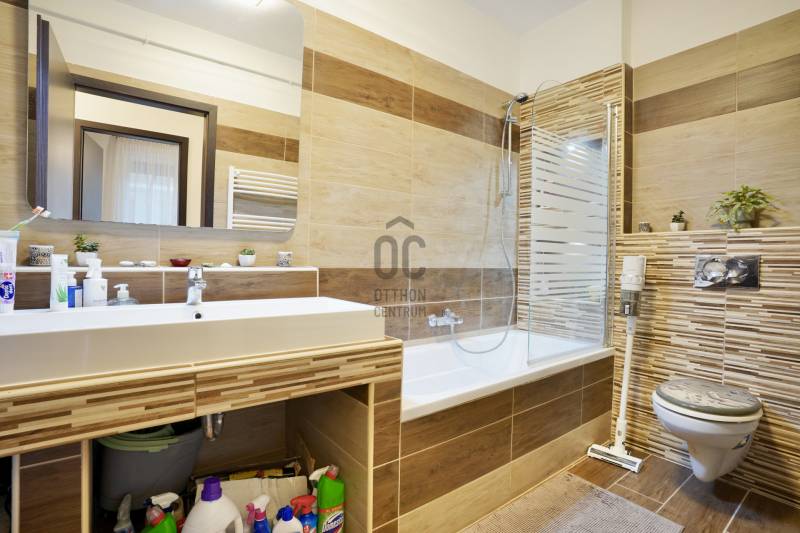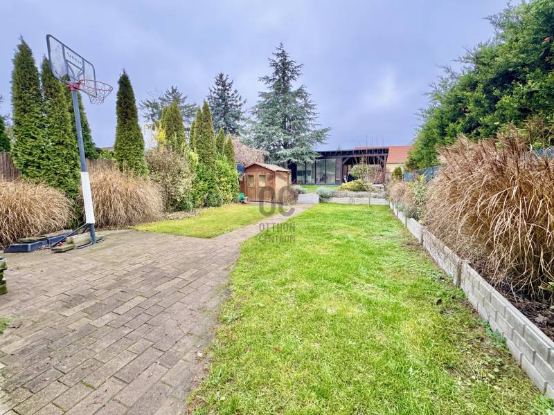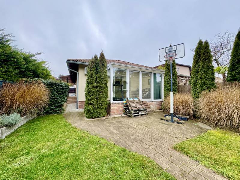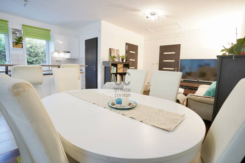 Eladó sorba került egy 110 m²-es ikerházfél Dunakeszi Alsó egyik csendes utcájában, 6 perc sétára a vasútállomástól és buszmegállótól.A Szabadságliget egyik legkedveltebb, csendes, átmenő forgalomtól mentes utcájában helyezkedik el ez a modern, 90 m²-es téglaépítésű ikerházfél, amelyhez egy 13,5 m²-es fűthető télikert, valamint a kertben egy különálló, összkomfortos, 20 m²-es könnyűszerkezetes apartmanház is tartozik.A FŐÉPŰET:A ház 2015-ben épült, 10 cm-es külső hőszigeteléssel, cseréptetővel, műanyag nyílászárókkal, minőségi burkolatokkal, mozgás- és nyitásérzékelő riasztórendszerrel. A melegvízről és a fűtésről Ariston kombi cirkó kazán, a hűtésről és rásegítő fűtésről Gree hűtő-fűtő klíma gondoskodik. A radiátoros és padlófűtés kombinációja kellemes, energiatakarékos hőérzetet biztosít, minden helyiségben redőny van, az ablakokon pedig szúnyogháló. A MELLÉKÉPÜLET:A kert hátsó részén található egy könnyűszerkezetes, hőszigetelt és teljesen önálló 20 nm-es vendégház, amely:- saját szobával,- külön konyhával,- zuhanyzós, beépített WC-vel felszerelt fürdővel,- valamint elektromos padlófűtéssel és klíma előkészítéssel rendelkezik.A melegvizet itt is Ariston, víztartályos villanybojler biztosítja, így az épület teljesen független a főépület rendszereitől. A vendégházhoz tartozik egy 17 m²-es fedett terasz, valamint egy füvesített, sziklakertes pihenő- és sütögető rész is.RENDEZETT, GONDOZOTT KERT:- automata öntözőrendszer- kerti csap- térkövezett, napelemes megvilágított közlekedőfelületek- 3 autó számára fedett beálló közvetlenül a ház mellett- szépen karbantartott gyep, dísznövényekkel beültetett magaságyás, sziklakert és 10-15 éves, magas tujákKIVÁLÓ KÖZLEKEDÉS:- vonattal 18 perc alatt elérhető a Nyugati pályaudvar,- busszal 3 perc Újpest–Káposztásmegyer,- autóval néhány perc alatt elérhető az M2-es, M3-as és az M0-s autópálya.Iá.: 169,5 M Ft. |