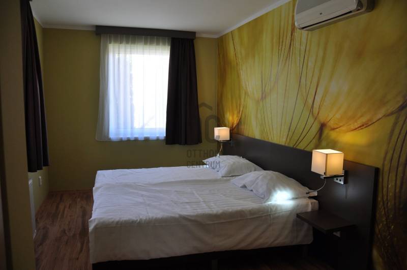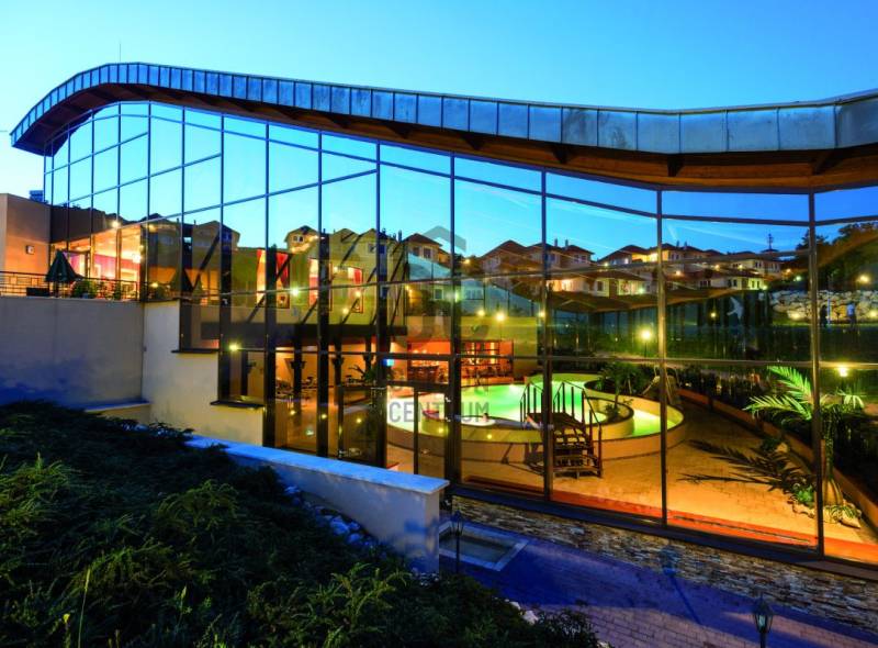 Csodálatos környezetben, a Neszmélyi Borvidéken fekszik a komplexum, mindössze 1 órányi autóútra Budapesttől. A 7 hektáros területen önálló házak találhatók, melyből az értékesítési csomagban 40db , 90 és 118 nm alapterületű légkondicionált ingatlan van.A területen lehetőség -és engedély - van további 48 lakás megépítésére.A meglévő házak egy részét magánszemélyek megvásárolták, a többi ingatlant folyamatosan, szállodaként hasznosítják.A park közepén van egy nagy közös épület, mely a recepcion kívül számos különböző egységet rejt, melyet bárki használhat :- Gyönyörűen kialakított beltéri és kültéri medence egyaránt- Wellness központ szaunával, jacuzzival, gőzkabinnal- Szolárium- Masszázs- Fitness terem- Étterem, melyhez tartozik 2 nagy terasz is- Bár és kávézóA központi épület része a körpanorámás, 150 fős konferenciaterem, mely akár esküvők, rendezvények lebonyolítására is tökéletesen alkalmas.A gyerekeknek játszópark áll rendelkezésükre. Komoly érdeklődőknek szívesen adok további információkat. |