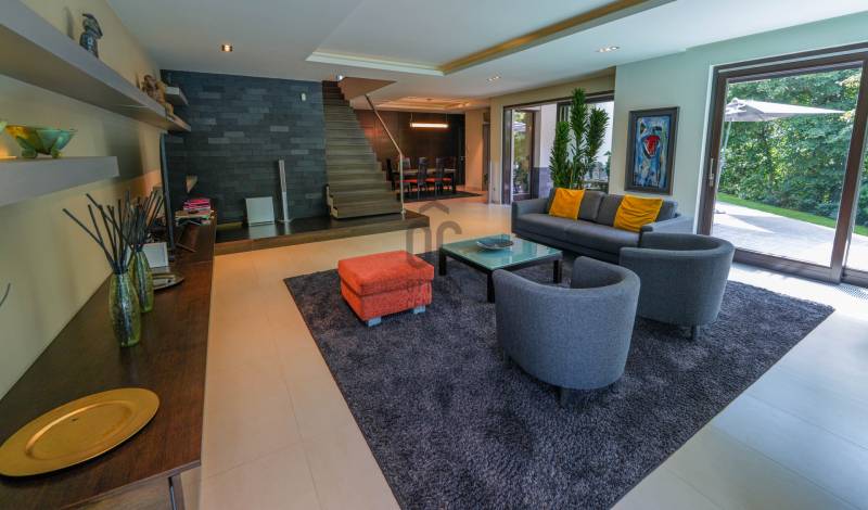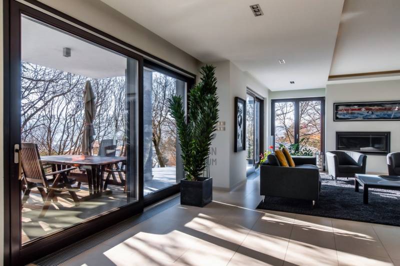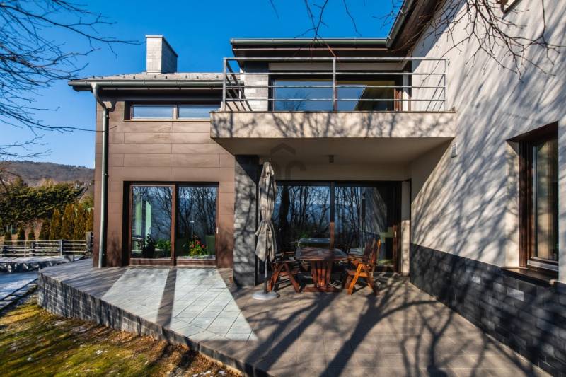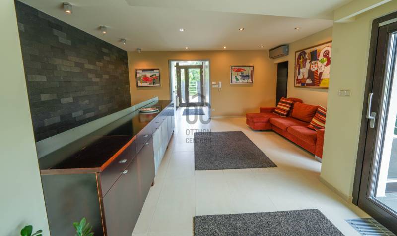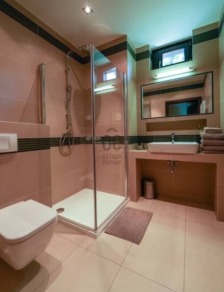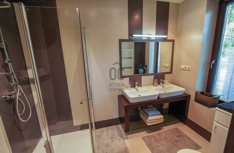 A tulajdonosok által megálmodott, belső építész által tervezett, igényes, két szintes családi ház várja új lakóit!A 2013-ban épült, 5 szobás, két nappalis, 4 fürdős, medencés, szaunás 272,4 nm-es, panorámás ház, igazi kuriózum.Az ingatlan jellemzői:- DK-i tájolás -12 cm szigetelés- fűtés: padlófűtés és radiátor, kandalló, inverteres hűtő-fűtő klíma- 3 réteges hőszigetelt fa nyílászárók- elektromos redőnyök- egyedi tervezésű beépített bútorok- egyedi konyhabútor AEG és Elektrolux konyhagépekkel- finn szauna- hőszivattyús medence- riasztó- elektromos kapu- 1 állásos garázs és 2 állásos nyitott beállóA csendes utcában elhelyezkedő, tökéletes kialakítású ingatlan teraszán gyönyörködhetünk a panorámában, de pár perc alatt elérhető bolt, Budapesti Amerikai Iskola (AISB), óvoda, általános iskola.Ha valódi luxusra vágyik, ez az ingatlan Önre vár! Hívjon és nézze meg személyesen! |