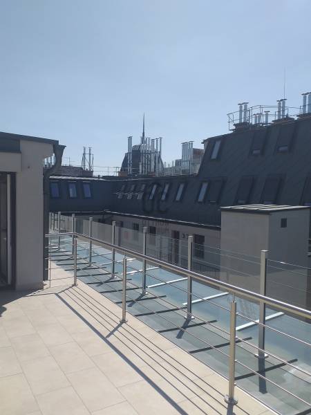 Exkluzív környezetben, műszakilag és esztétikailag a jelen elvárásainak megfelelően megtervezett és kivitelezett 58 m2 alapterületű, nappali-konyha-hálószoba beosztású lakás, 29m2-es tetőterasszal eladó.A lakás Petschacher Gusztáv tervei alapján készült épület 5.emeletén helyezkedik el, egyszintes, ablakai a csendes belső udvarra és utcára néznek.Kedvező beosztású, az alsó szinten a konyha, nappali és hálószoba, a felső szinten egy nagy tetőterasz található. Az előtértől balra a 12 m2-es hálószoba, jobbra a 27 m2-es tágas, világos nappali van, egy légtérben a konyha-étkezővel. A fürdő a hálószobából közelíthető meg, a toalett közvetlenül az előtérből nyílik.A lakás hűtéséről és fűtéséről oldalfali fan-coil rendszer gondoskodik. Riasztórendszer kiépítésre kerül. A hidegburkolatok (konyha, fürdőszoba, közlekedők) alatt padlófűtés kerül elhelyezésre. A lakások hűtését és fűtését H tarifás hőszivattyús rendszer biztosítja, így a lakások energiaellátásának költsége nagyon kedvező.Projekt leírásA lakások az UNESCO világörökség részét képező műemlék védettség alatt álló épület tejesen új építésű tetőterében helyezkednek el.A lakások mind saját lakásnak, mind értékálló befektetésnek is kiválóak. A már kivitelezés alatt álló 15 lakásos projekt keretében eladásra kínált változatos méretű egyszintes, belső kétszintes, illetve háromszintes luxus lakások nagyméretű tetőterasszal, télikerttel a legmagasabb igényeket kielégítő kivitelben készülnek.ELHELYEZKEDÉS:A lakások elhelyezkedése minden szempontból kedvező, kiváló közlekedési kapcsolatokkal. Közel a Pesti Broadway, pár perc sétára van a Zeneakadémia, az Operaház, az Operettszínház, a világörökség részét képező Andrássy út, a Liszt Ferenc tér, továbbá a Király utca, a Gozsdu udvar, amely a Budapest belvárosának egyik legdinamikusabban fejlődő központja, egy találkozási pont, ami összeköti a szórakozást, a gasztronómiát és a kultúrát. A szórakozó negyed a hét minden napján egyedülállóan izgalmas programokkal várja vendégeit.INGATLANOK:Exkluzív környezetben, műszakilag és esztétikailag a jelen elvárásainak megfelelően megtervezett és kivételezett 64-154 nm alapterületű, teraszos lakások eladók.Az új lakások a luxus minden elemével rendelkeznek, modern otthont teremtve a lakóknak, míg a világörökség részét képező, 1895-96-ban Petschacher Gusztáv tervei alapján épült eklektikus épület őrzi a régi hangulatot, amely az építés során felújított homlokzattal hangsúlyossá válik. Tradicionális környezetben teremt - a luxus minden elemével rendelkező - modern otthonokat.ÜTEMEZÉS:Az építkezés a januárban meghatározott ütemnek megfelelően, késedelem nélkül halad:- a tetőszerkezetet tartó acél keretállások elkészültek, továbbá a műemléki bádog tető fa fogadó részének a felrakása befejeződött, melyet követően az épület teljes lefedése megtörtént.- az udvarra kerülő 8 személyes új Kone lift tartószerkezete kész és 2023 márciusára a lift üzembe helyezése is megtörténik.- a homlokzat felújítás elindult.- a lakások falainak építése, az elektromos és gépészeti munkák is elindultak és megfelelő ütemben folynak.MŰSZAKI TARTALOM:PADLÓBURKOLAT- Beltér -A belső lépcső, kerámia burkolat készül, a megajánlott alap burkolattal. Opcionálisan lehet választani faburkolatot mely megegyezik a svédpadló anyagával.A belső vizes helyiségben, a belső lépcsőkön és a konyhákban, valamint a nappali terében elhelyezkedő konyhai területeken matt kerámia készül.A fürdőszoba egyik falára választható opciós burkolat. A nappali terekben és a hálószobákban svédpadló kerül lefektetésre.- Kültér -A teraszok, és a függőfolyosók csúszásmentes fagyálló kerámia ill. greslap burkolatúak, teljes felületű, üregmentes, flexibilis és fagyálló ragasztással.FALBURKOLAT- BeltérA vizes helyiségben ragasztott kerámia vagy greslap falburkolat készül álmennyezet alsó síkjáig.A pozitív éleket sarokprofillal lesznek kialakítva. A konyhákban a falon csak a konyhabútor és a felső szekrény között készül fali kerámia burkolat.Belső festések min.2 rtg. diszperziós fehér falfesték falakon, mennyezeten- Kültér -A teraszoknál külső Trespa falemezes burkolat kerül a határoló falakra, tölgy színben.NYÍLÁSZÁRÓK- Beltér -Három oldalon falcolt, vázszerkezetű Mantu Echt ajtók kerülnek furnérozott ajtólapokkal, eloxált alumínium kilinccsel és körrozettával.- Kültér -A lakásokhoz tartozó külső nyílászárók rendszere: Gealan S9000 ötkamrás, 3 rétegű, kiváló hang és hőszigetelést biztosító rendszer, kívül barna, belül fehér színű, távirányítóval működő külső redőnnyel. A tetőteraszok tolóajtó szerkezetűek.A tetősíkba beépített ablakok Fakro típusúak, elektromos mozgatású redőnnyel, belül fehér, kívül szürke. Ahol szükséges, betörésbiztos balesetvédelmi biztonsági fóliával ellátott üvegezéssel készül.Az öt ponton záródó, acéltokos lakásbejárati ajtók a hatályos előírásoknak megfelelő biztonsági szinttel, a vonatkozó klímaosztálynak megfelelően készülnek, barna színben.A konyhabútort és konyhagépeket az ár nem tartalmazza, de felár ellenében beépítésre kerül!A konyhában beépített süllyesztett led munkafénnyel készül, az ajtók színével azonos színvilágú, 18 mm vastagságú bútorlap kerül beépítésre. A munkalap színe választható. A mosogató pult süllyesztett, rozsdamentes egymedencés. A beépített gépek AEG, vagy azzal megegyező műszaki színvonalúak lesznek.FŰTÉS - HŰTÉSHőenergia-felhasználás az lakásokban a padlófűtési és fan-coilos rendszerekben t