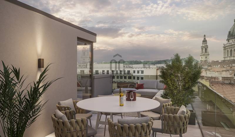 ELHELYEZKEDÉS:Amikor valaki kimondja, hogy \"a legpestibb utca\", akkor sokan azonnal rávágják, hogy igen, ez bizony a Király utca, merthogy Krúdy Gyula egy ilyen állandó jelzővel látta el egyik kedvenc utcáját.A helyiek és turisták körében egyaránt népszerű kulturális lehetőségek, valamint számos történelmi emlékhely karnyújtásnyi közelségben található. A környék mozgalmas, élettel teli.Autóval vagy gyalogosan kiválóan megközelíthető a mindössze két perc sétával elérhető Liszt Ferenc tér, a főváros három metróvonalának, valamint számos busz- és villamosjáratnak a centruma. Hosszútávon bérelhető parkolók mindössze 25 méter távolságban.ÉPÜLET:A társasház a folyamatosan pezsgő és fejlődő VI. kerület és a főváros egyik legkedveltebb részén található.Egy átfogóan restaurált és felújított műemlék épületet ötvözünk a XXI. század technológiáit képviselő modern, kortárs építészettel. Ez az összhang unikális végeredményt teremt Budapest belvárosi szövetének egyik legfrekventáltabb lokációjában. Homlokzat architektúrája építési korának harmóniára törekvő, egyszersmind a klasszikus formavilágból merítkező építészeti felfogás erejét hirdeti. PANORÁMA:A teraszokról látható lesz a Királyi Palota, a Mátyás templom, a Köztársasági elnöki palota, a Szabadság szobor, a Dohány utcai zsinagóga, az Operaház és a Szent István Bazilika ikonikus épületei, távolabb nézve a végtelenbe vesző dombok és hegyek nyűgözik majd le az otthonukból kitekintő lakókat.LAKÁSOK:A Penthouse lakások a tradíció és a korszerűség tökéletes kapcsolódása Pest tetején, egy történelmet megidéző műemléki környezetben, országos műemléki védettség alatt lévő házban. A tervezők arra törekedtek, hogy a lakások minél több irányból kapjanak természetes megvilágítást, valamint a lakóegységek intimitása biztosított legyen. A projekt negyedik szintjén a belvárosban párját ritkítóan nagyméretű tetőterasz került kivitelezésre.A nagy teraszok felé megnyitott nappalik a nap útját követik, és páratlan panorámát biztosítanak a városra, a Budai várra és annak fenséges épületeire. A belső terek kialakításához olyan neves hazai belsőépítészeket kértek fel, mint Fejes Gergő lakberendező designer.Mindezen eszközökkel korszerű, energiahatékony prémium lakóházakat hozunk létre.MŰSZAKI LEÍRÁS:Fontos cél, hogy a penthouse lakásokat belsőépítészeti vezetéssel, személyre szabott intelligens megoldásokkal az új tulajdonos igényeire formáljuk. Kiemelt figyelmet fordítunk az anyagok minőségére és a beépített technológiákra.Legújabb nemzetközi trendeknek megfelelő belsőépítészet- Modern igényeket kielégítő alaprajzi elrendezések- Nagyméretű teraszokkal megnyitott nappalik és hálószobák- Hatalmas ablakfelületek lélegzetelállító panorámával rendelkező emeleti lakások- Elegáns belsőépítészeti megoldások- Magas minőségű hideg és meleg burkolatok- Prémium csaptelepek és szaniterek (Bruma, Gessi, Laufen)- Prémium minőségű lámpák (Wever & Ducré, Flos, Vibia, Martinelli Luca)- Hüppe zuhanykabinok- Az otthonok maximális intimitása biztosítottMivel megújuló energiával működik, a hőszivattyú a leginkább környezetbarát és egyben legköltséghatékonyabb fűtési megoldás.A lakástulajdonosok motivációi között, már itthon is megjelent a maximális gázfüggetlenség elérésének célja egyfajta szolgáltatóktól, központi energiaellátástól való függetlenedési törekvés növekvő trendje is tapasztalható.A lakások hőellátását és hűtését teljesen megújuló energiaforrással, a külső levegő hőenergiájának felhasználásával terveztük, amelyet osztott rendszerű hőszivattyúval hasznosítunk hűtési, fűtési és használati melegvíz termelés célra.A hőszivattyúk elektromos ellátása kedvező árú GEO tarifás áram vételezéssel történik.Ezenkívül minden lakás, magas színvonalú Smart Home rendszerrel van felszerelve.- Energiatakarékos és környezettudatos egyedi hőszivattyús okos hűtés/fűtés rendszer, távoli vezérléssel- Zöld Energia felhasználás GEO tarifa- Smart Home rendszer- Okos világítási rendszer, távoli vezérléssel- Beépített riasztó rendszer, távoli riasztással és vezérléssel- Beépített árnyékolási technikák, elektromos redőnyök, zsalúziák, távoli vezérléssel- 3 rétegű, hő és hangszigetelő üvegezésű alumínium nyílászárók- Tetőteraszon jakuzzi és kerti zuhany- Szauna telepítési lehetőség- Olasz konyhabútorok (Modulnova, Cucinesse) felső kategóriás Bosch konyhagépekkel (hűtő, mosogatógép, mikrohullámú sütő, sütő, beépített mosógép, borhűtő)- Elektromosan működő bejárati ajtó, távoli vezérlésselA penthouse lakások értékesítése elindult, ha érdekli a lakás, és szeretné megtekinteni, kérem vegye fel Velem a kapcsolatot elérhetőségeim egyikén.Projekt bemutatásaMitől lesz egy lakás értékálló? Elsősorban a lokációtól. Ez az a pont, ahol eldől, hogy a lakás 10-20 év múlva könnyen és jó áron eladható lesz-e. A legjobb környékek természetesen minden városban a belvárosban vagy annak közelében vannak ahonnan jó a közlekedés a belvárosba. Így van ez Budapesten is, ahol a VI. kerület az elmúlt években igazi sztárkerületté vált.Ezen nem is kell különösebben csodálkoznunk, hiszen a kerület közvetlenül határos az V. kerülettel, rendkívül jó a közlekedése.A kerületen belül is az egyik legnépszerűbb városrész Terézváros, ami a körúthoz és az Andrássy úthoz való közvetlen közelségével vívta ki magának ezt a pozíciót. Itt még találunk szép, körfolyosós belvárosi házakat, amelyekben mindig érdemes lakást venni. Ezek a lakások azonb